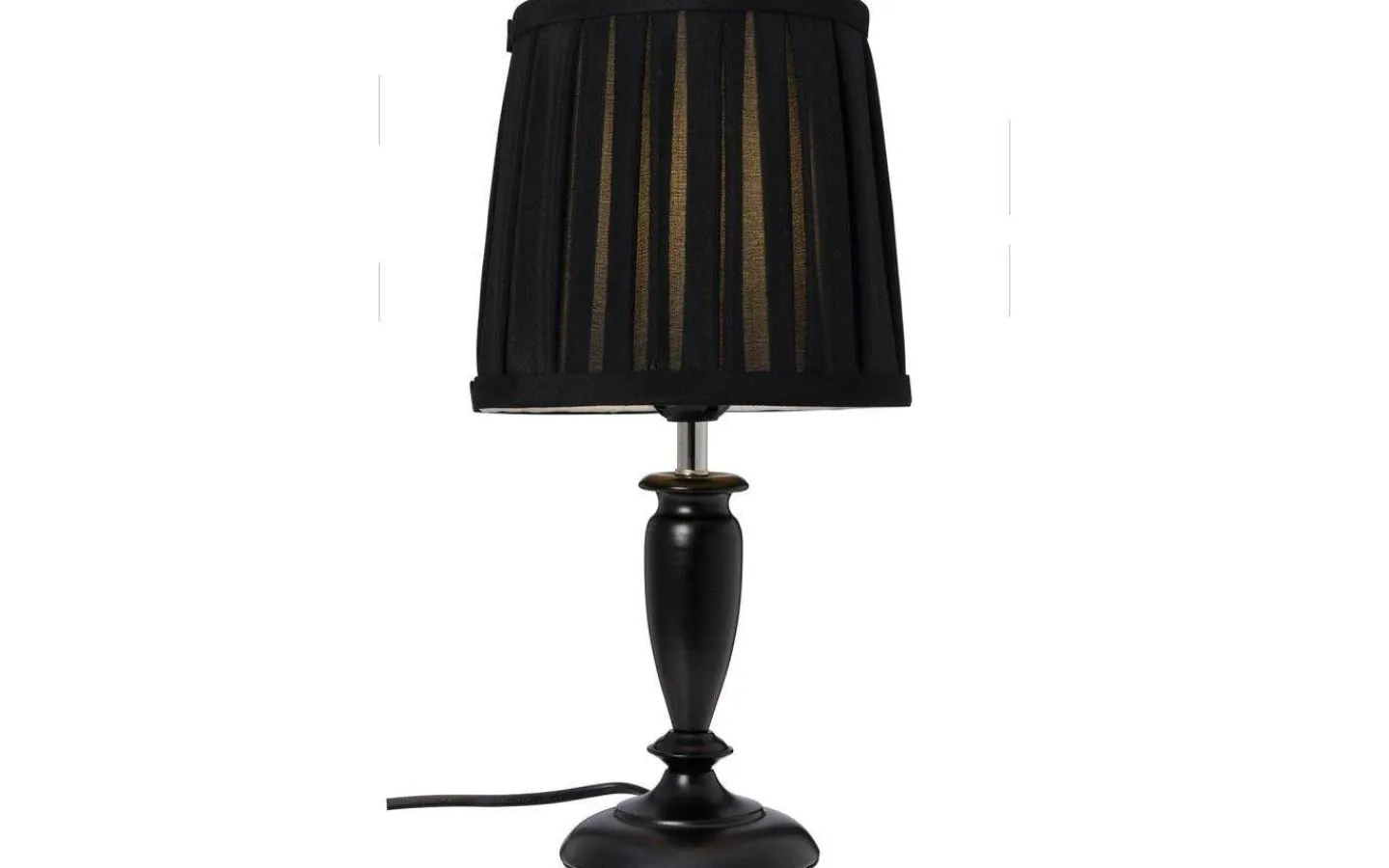 Fina bordslampan Ines, från Cottex, är en söt bordslampa med fot i svart metall kombinerat med svart plisserad (veckad) textilskärm.