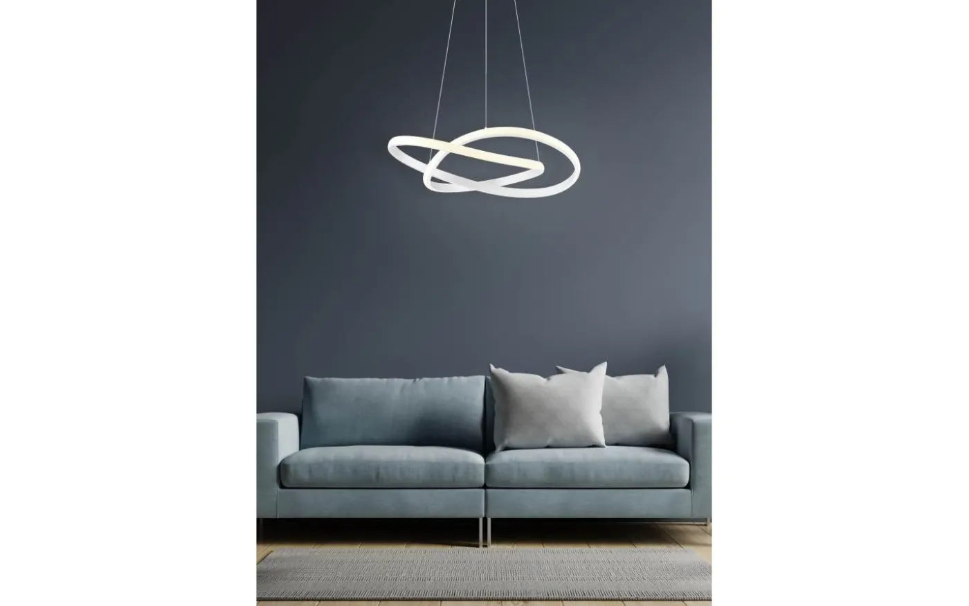 COURSE taklampa kan sätta eleganta accenter i ditt vardagsrum och sovrum. Smart designad och perfekt placerad blir lampan ett riktigt blickfång i ditt hem. COURSE består av två ringar som avger ett behagligt mjukt ljus. Den integrerade SWITCH-dimmern låter dig välja mellan tre olika ljusstyrkenivåer med en vanlig ljusströmbrytare. Genom att gradera ljusintensiteten från 100 % till 50 % och 25 % kan armaturen användas för att skapa olika ljusstämningar. Den mattvita ytan ger armaturen en modern design som kan hittas i många inredningsstilar. Dessutom har armaturerna modern LED-teknik, vilket står för hög ljuskvalitet. LED-ljuskällor kännetecknas av lång livslängd och låg värmeutveckling. Ljuskälla: inklusive 1x SMD LED, 27,5W · 1x 3150lm, 4000K. Extra information: 4000K, Justerbar i höjd, Takmontering, IP20, Ej lämplig för extern dimmer, Dimbar via strömbrytare