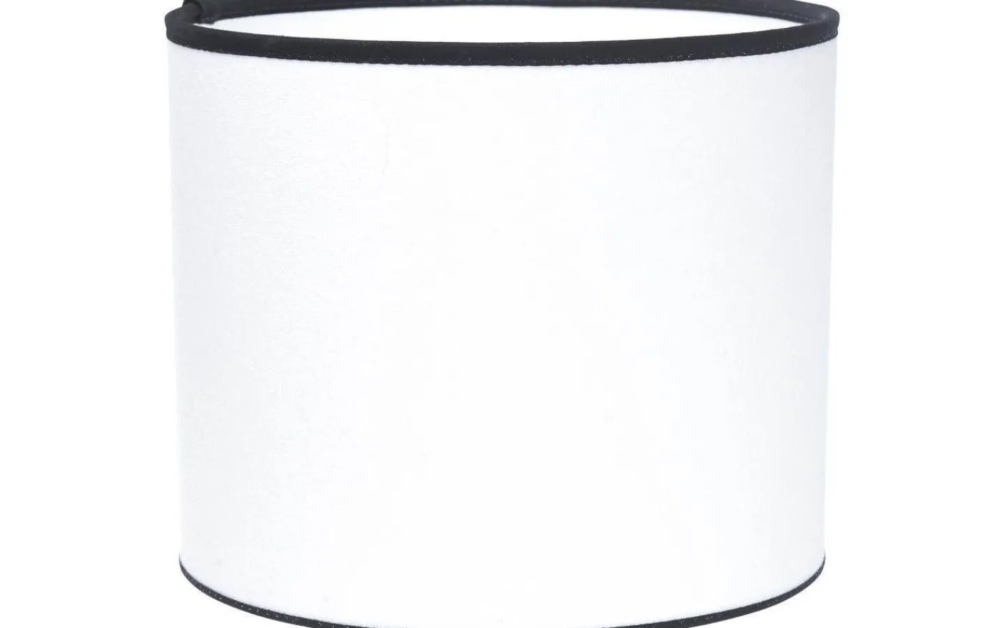 Sara lampskärm från PR Home är en cylinderformad lampskärm tillverkad i ett bomullstyg med vit insida och ett kontrasterande kantband. Den vita insidan gör att ljuset flödar fint i hela skärmen. Lampskärmen har E27-ringfäste.
