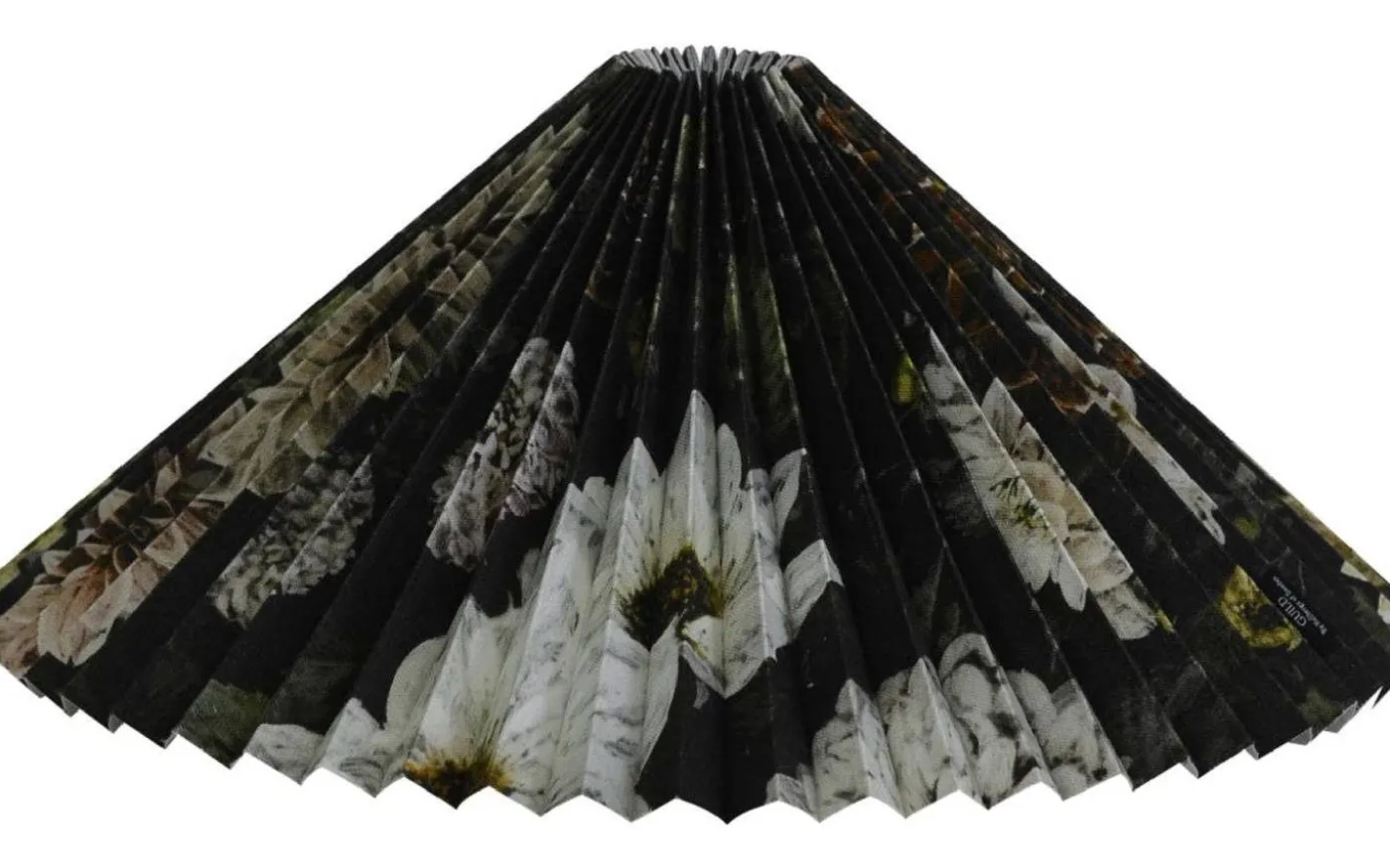 Dahlia Noir takskärm från välkända Hallbergs Lighting of Sweden är en vackert plisserad, takskärm med motiv av dahlior.