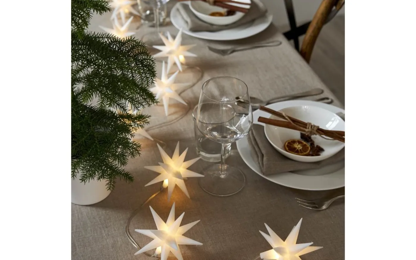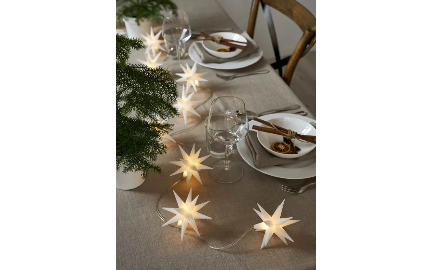 Vackra December ljusslinga från Star Trading har 8st små vita moravianstjärnor. Inuti varje liten stjärna sitter en liten LED-lampa som avger ett härligt varmvitt ljussken. Den perfekta juldekorationen som garanterat förhöjer stämningen juletid!