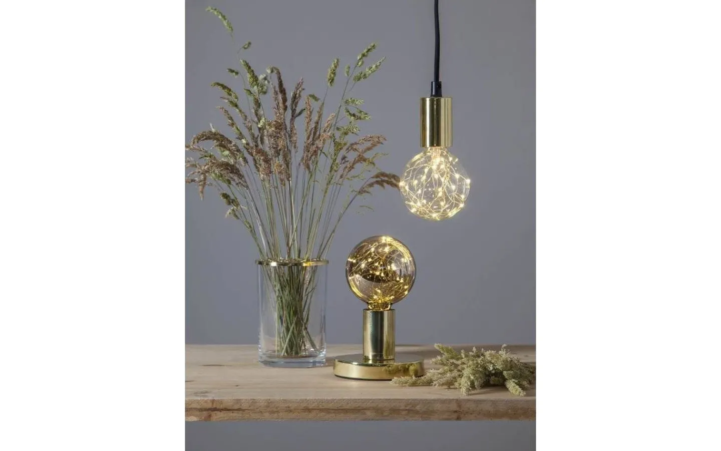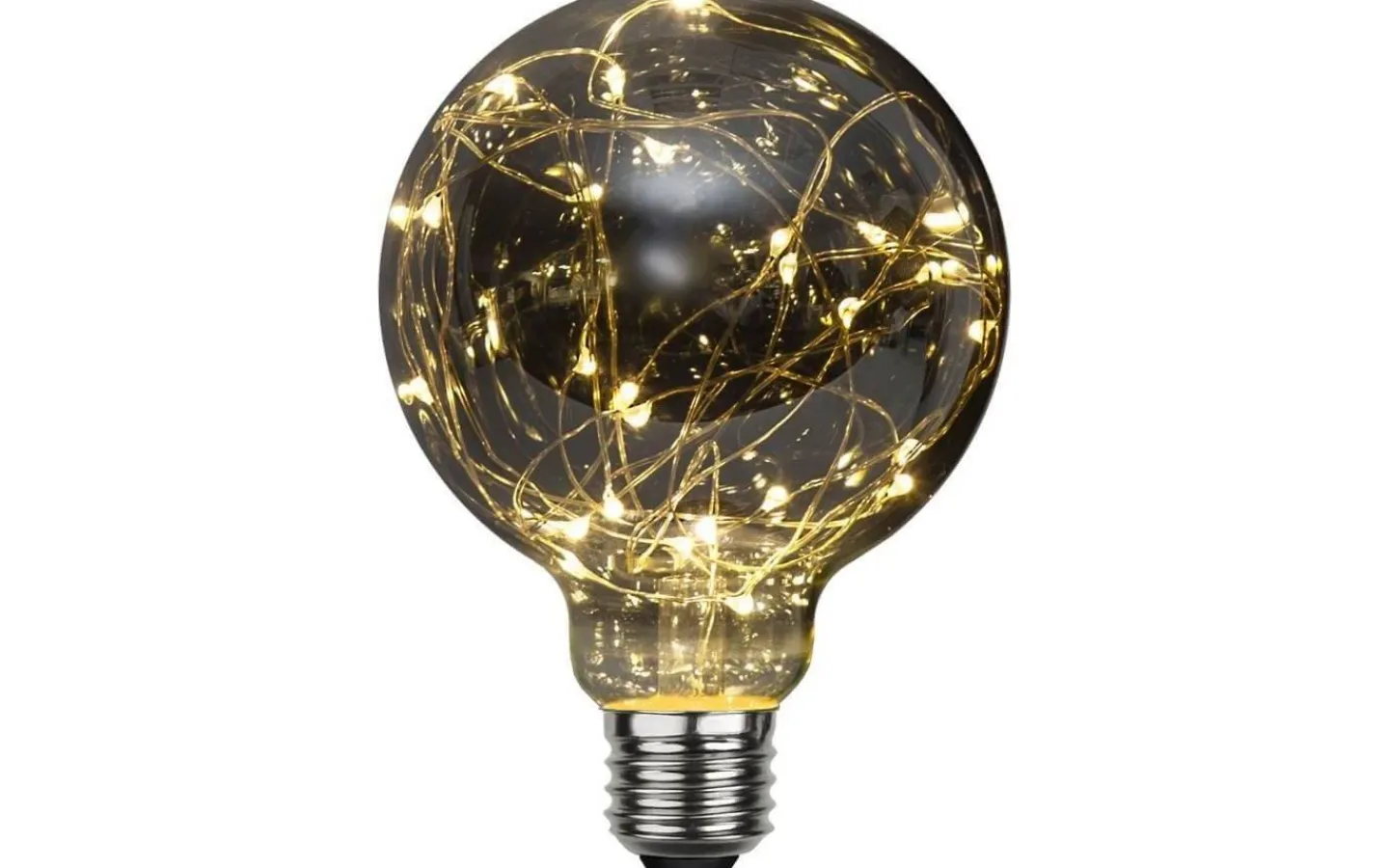 95mm Glob med Heavy smoke glas och E27-sockel. Dew Drop-slingan har 25 stycken neutralvita LED.
