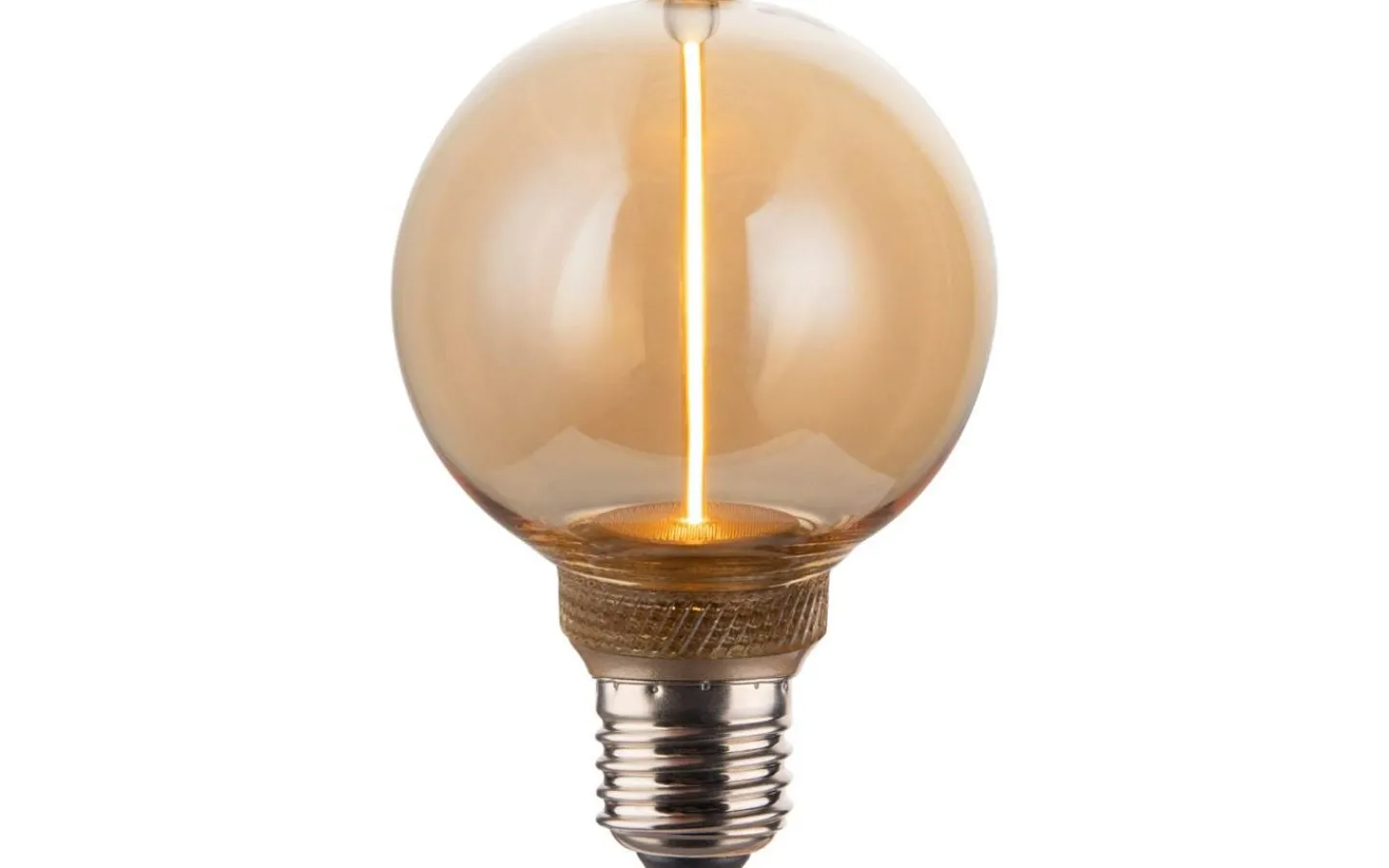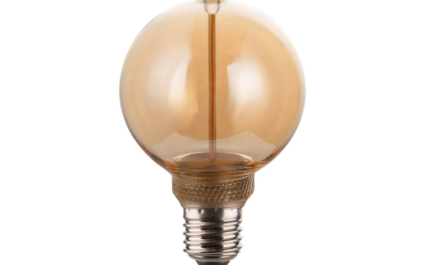 Dekorativ LED-ljuskälla i futuristisk design med amberfärgat glas. Ljuskällan är dimbar och har E27-sockel.