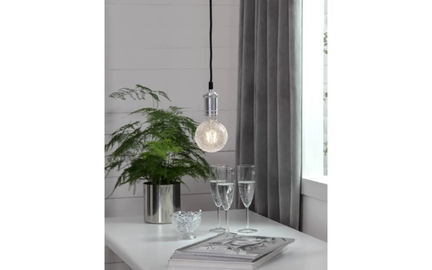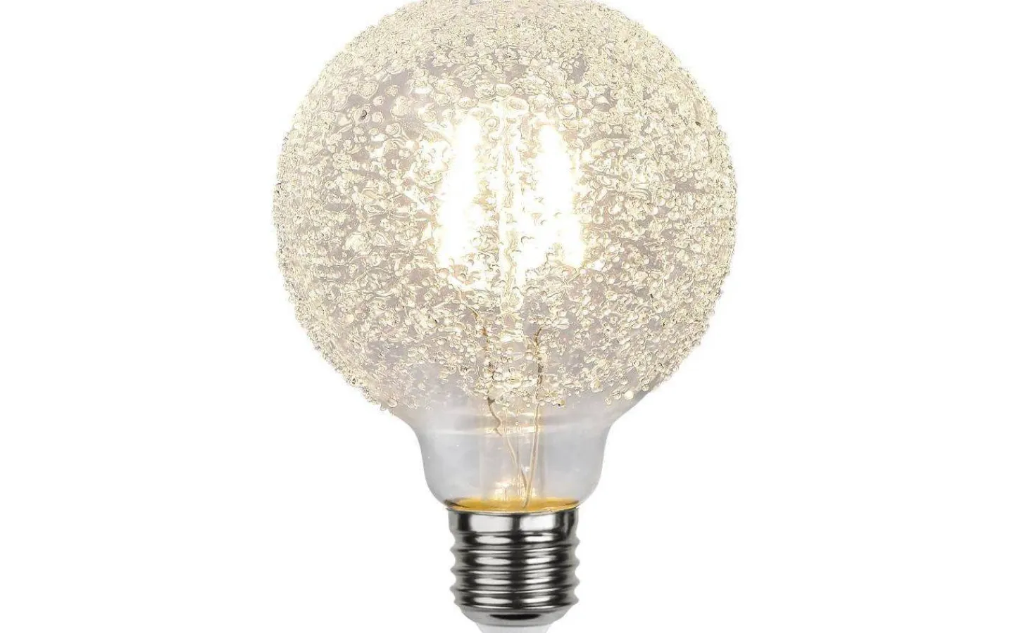 Härlig LED-lampa i globformat på 95 mm, från Star Trading. Denna ljuskälla har en knottrig yta, inspirerat av frusna vattendroppar, och gör att lampan avger en supermysig ljusbild. Denna ljuskälla passar perfekt i bordslampor, vägglampor eller hängande pendlar där ljuskällan är synlig.