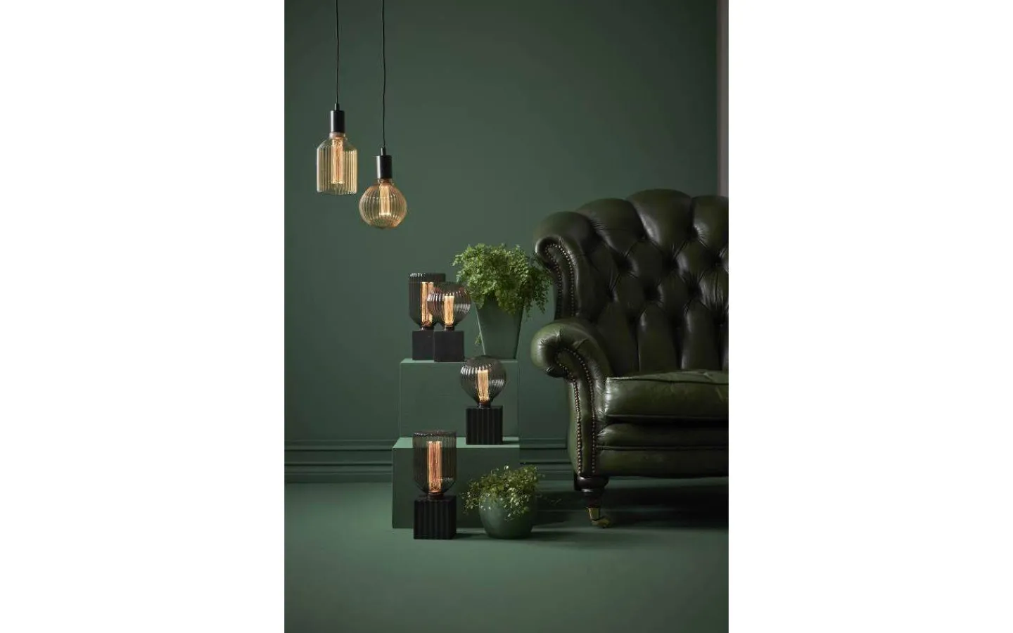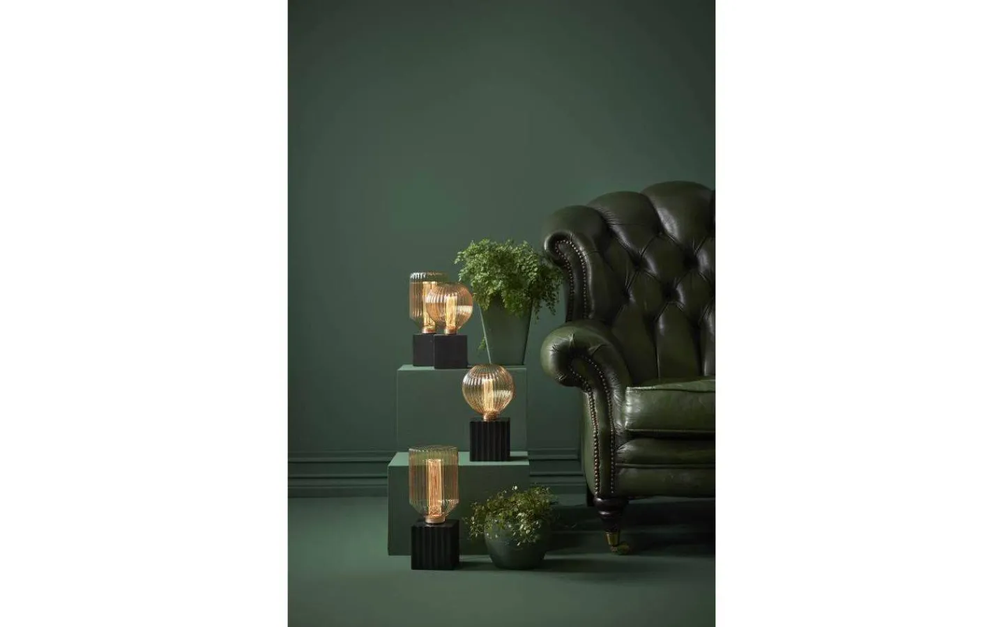 Läcker LED-lampa med spännande form och amberfärgat glas. Denna ljuskälla ger ett mysigt och varmt sken. Lämpar sig ypperligt för dekorationsbelysning och passar perfekt i våra upphäng, eller lampfötter. Hittar sin självklara plats över såväl soffbord, bardisk som över en matsalsmöbel. Kan hänga själv eller i ett arrangemang med 353-84.