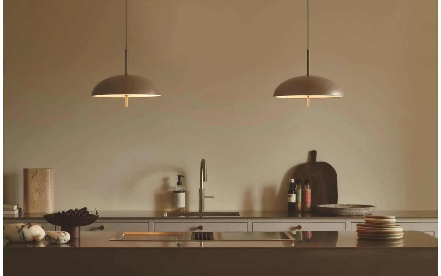 Versale-serien från Anker Studio är sinnebilden av skandinavisk minimalism. En perfekt rund skärm med en jämn ljus yta som bara bryts av staven som går igenom ytan. Pendellampan har ett bländskydd och ger ett behagligare ljus.