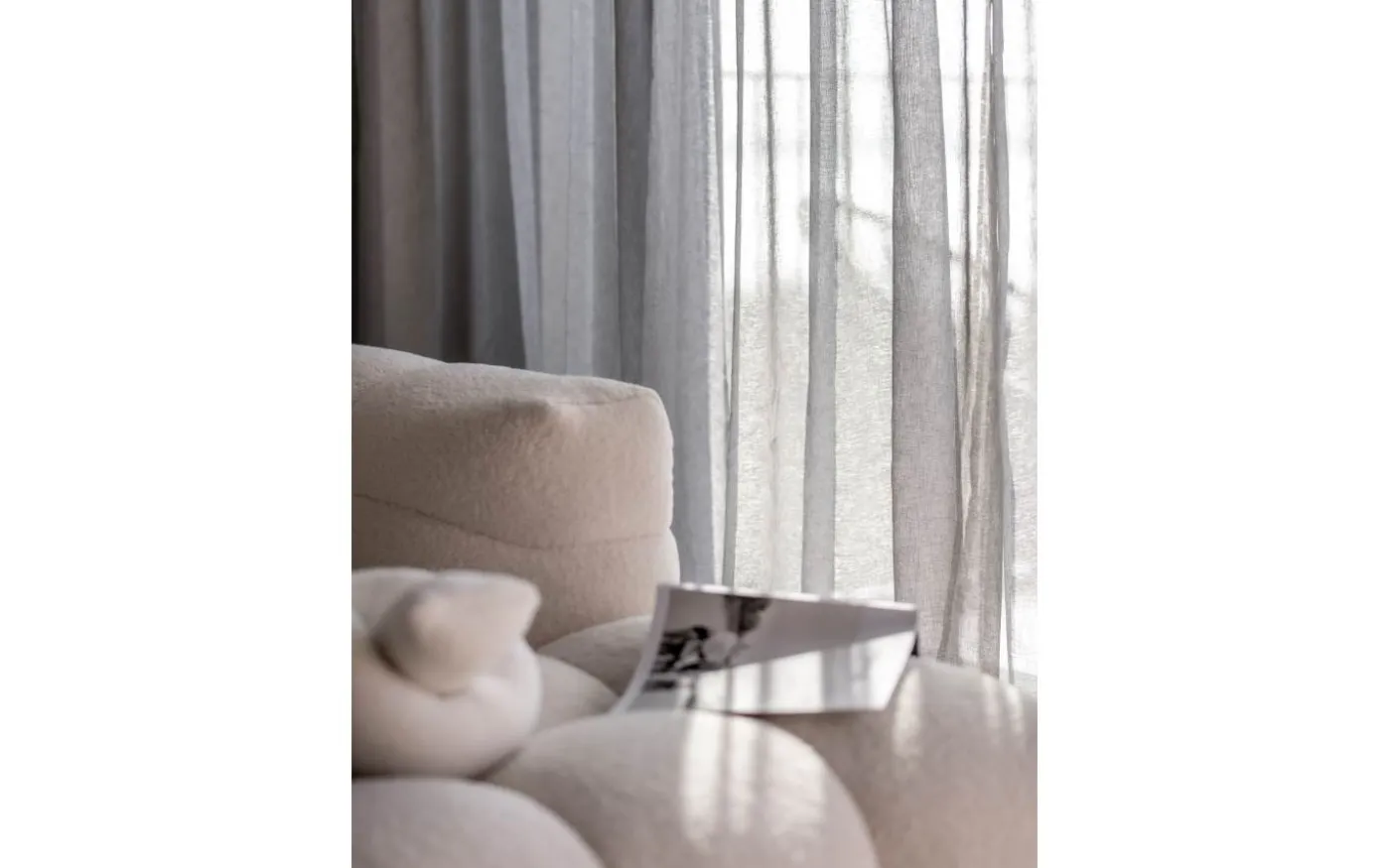 2-pack multibandslängder i ett skirt tyg som silar ljuset. Tyget har en vacker struktur och färgskiftning som gör det levande. Har multiband i ovankant, fållade långsidor och overlocksöm i nederkant.