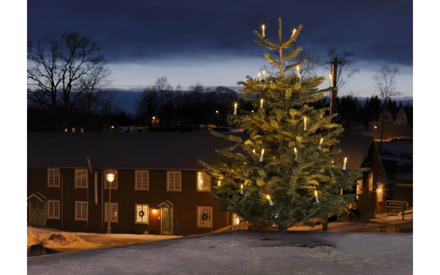 Du kan enkelt placera ut lamporna i granen genom att klämma fast dem med hjälp av klämman som är placerad i underkant av varje ljus. Det är 80 cm kabel mellan varje ljus och slingan levereras komplett med lampor och en 5m lång anslutningskabel med transformator och stickkontakt för vägguttag.