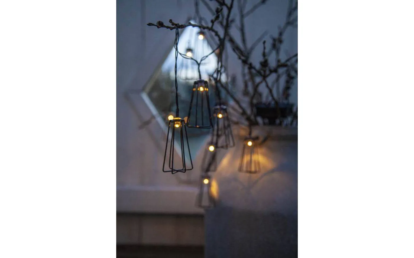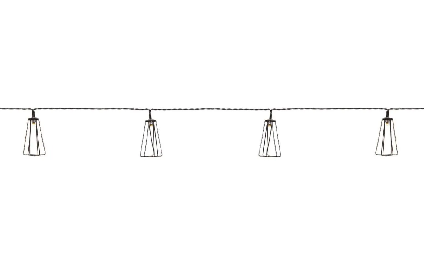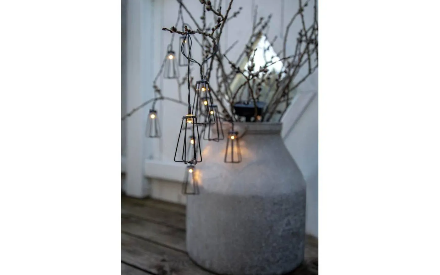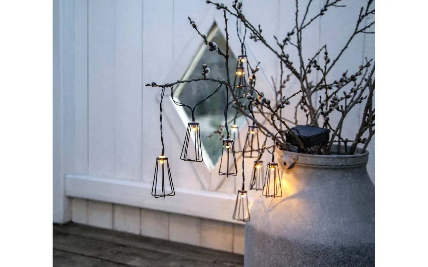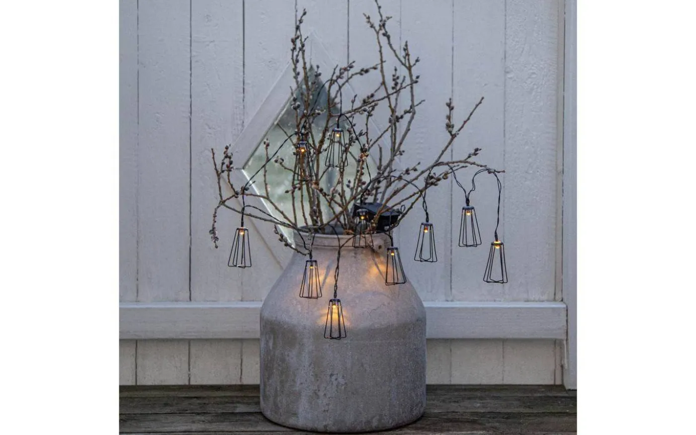Eddy solcellsdriven ljusslinga från Star Trading har 10st metalldekorationer i en modern look. Metallskärmarna sitter över en varmvit LED-lampa som lyser upp i ett härligt varmvitt ljussken när mörkret faller. Det är 20 cm mellan metalldekorationerna som tillsammans gör en 180cm lång ljusslinga.