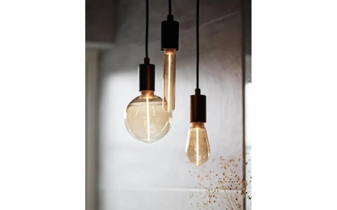 Snygg och dekorativ LED ljuskälla i futuristisk design med amberfärgat glas. Ljuskällan är dimbar och har E27-sockel.