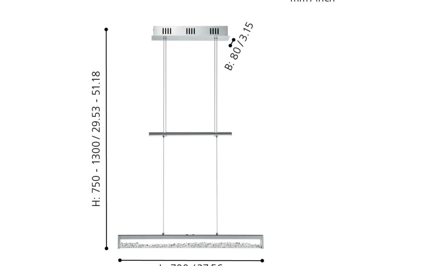 CARDITO 1 LED-pendellampan är gjord av förkromad metall och aluminium och har en långsträckt glaskropp med gnistrande kristaller inuti. De klara glaskristallerna skapar ett gnistrande, högkvalitativt utseende så fort ljuset är på, och de integrerade lysdioderna ger ett behagligt ljus som kan justeras efter behov. Du kan välja mellan varmvitt, neutralvitt och kallvitt ljus. ”Touch me”-zonen kan tända och släcka taklampan och justera färgtemperaturen. Den höj- och sänkbara taklampan är 70 cm lång och är en distinkt, stilren och iögonfallande funktion i ditt hem, kanske över ett långbord i matsalen.