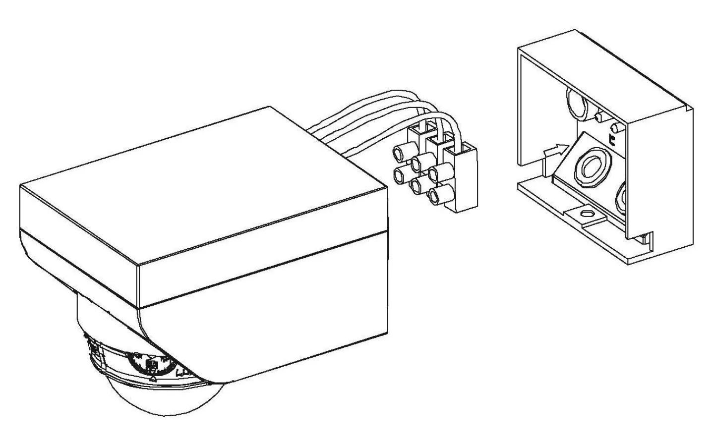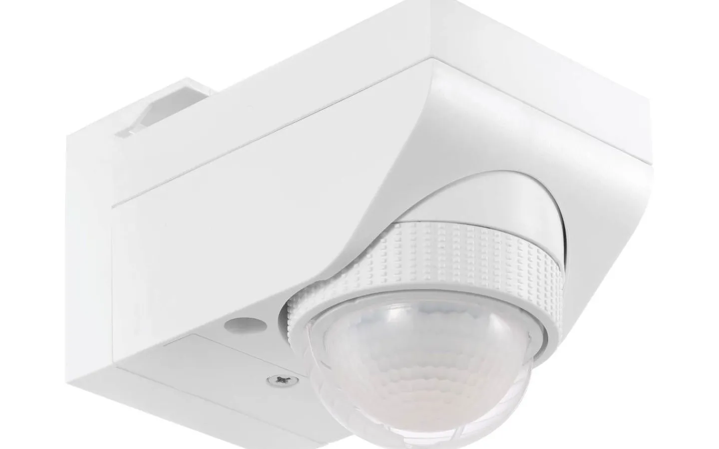 Rörelsedetektorn DETECT ME 4 har en rektangulär vit plastyta. Sensorn har IP44-skydd mot stänkvatten, vilket innebär att produkten är lämplig för användning i utomhusområden som trädgården, garaget eller uppfarter. Produkten gör det möjligt att tända och släcka lampor utan sensor genom rörelsedetektering, vilket gör att områden med dålig sikt kan belysas vid behov och avskräcka oönskade besökare. Den integrerade skymningssensorn mäter omgivande ljusnivå för att säkerställa att ljuset bara tänds när det behövs. Alternativt kan du använda dag & natt-funktionen, så att ljuset tänds i skymningen och lyser permanent fram till gryningen. Produkten kan monteras i tak, vägg eller i hörn.