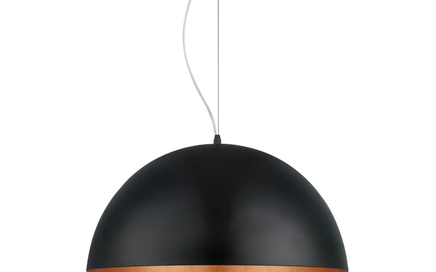 Pendellampan GAETANO 1 har en rund lampskärm av svart stål med en kopparfärgad insida. Produkten har en diameter på 53 cm. Pendellampan kompletterar interiörer i industriell stil och skapar den rätta stämningen i vardagsrummet eller matsalen ovanför matbordet.