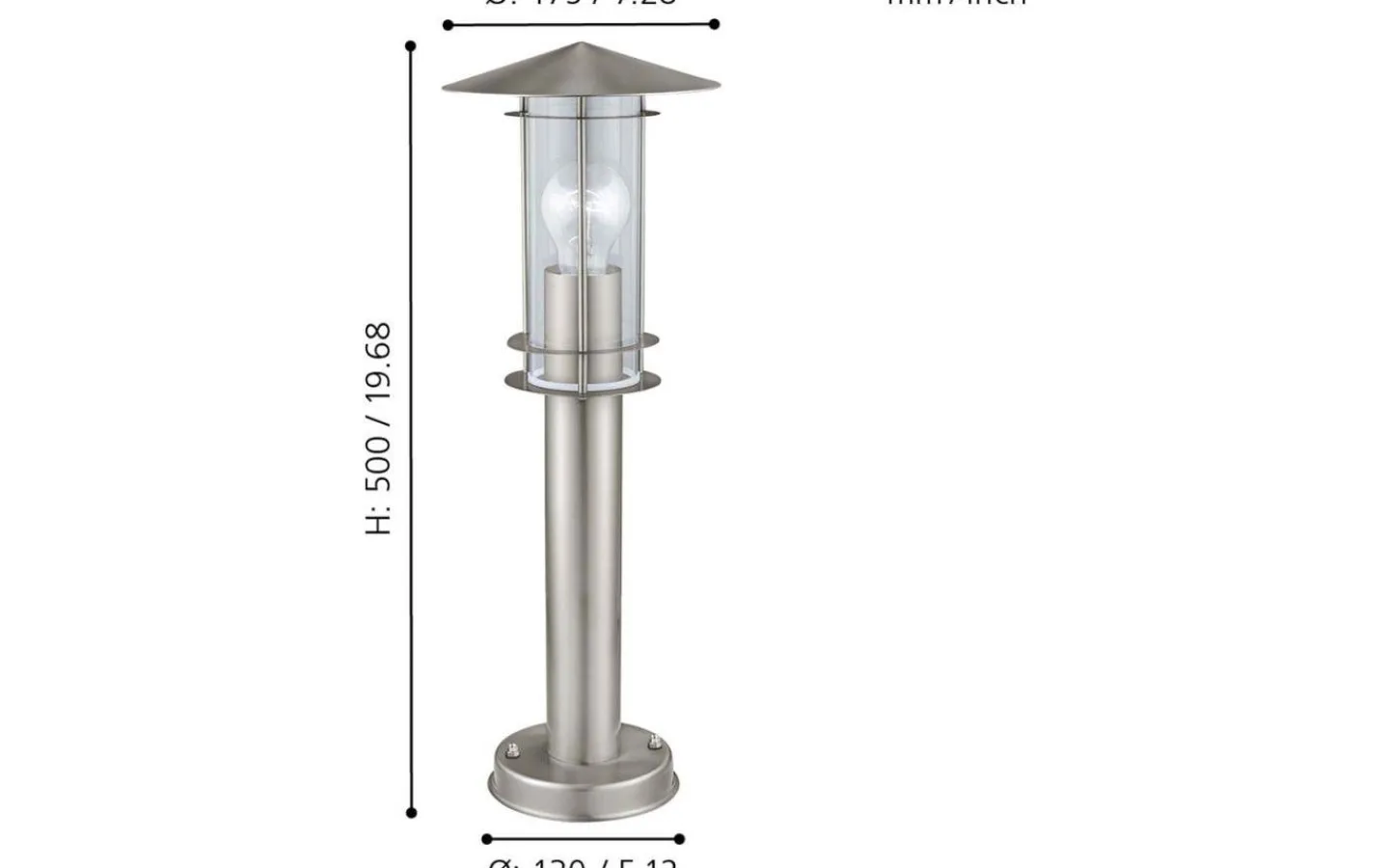 LISIO stolplampa har en kropp av rostfritt stål tillsammans med en cylinder av klarglas. Produkten är lämplig för utomhusbruk på grund av dess IP44-skydd mot sprutvatten. På grund av sin klassiska design smälter det yttre ljuset in i alla utomhusutrymmen.