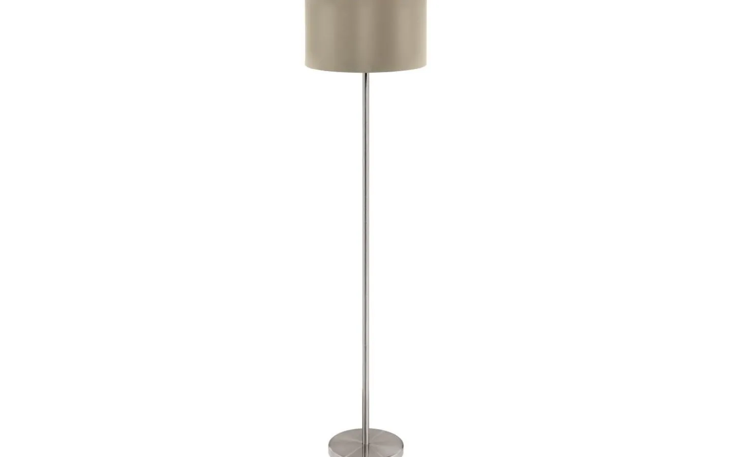 MASERLO golvlampa har en rund tyglampskärm i taupe med en guldfärgad inneryta och en sockel i matt nickelmetall. Golvljuset smälter perfekt in i minimalistiska och moderna interiörer. Lampan tänds och släcks enkelt med hjälp av den inbyggda golvströmbrytaren. Oavsett om det är i sovrummet, vardagsrummet eller matsalen ger den mysig belysning för alla utrymmen.