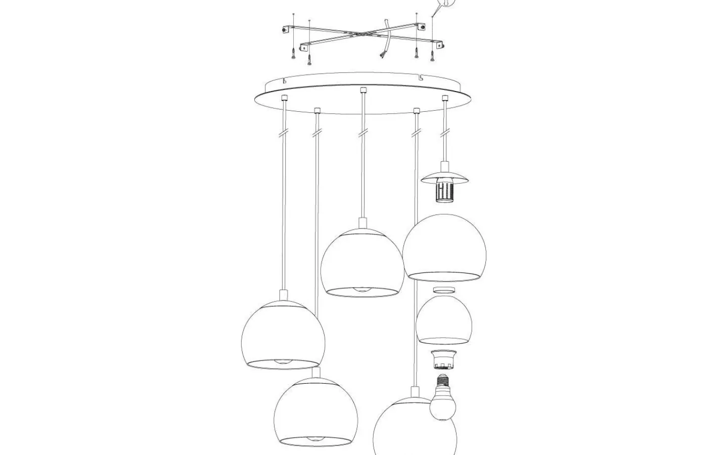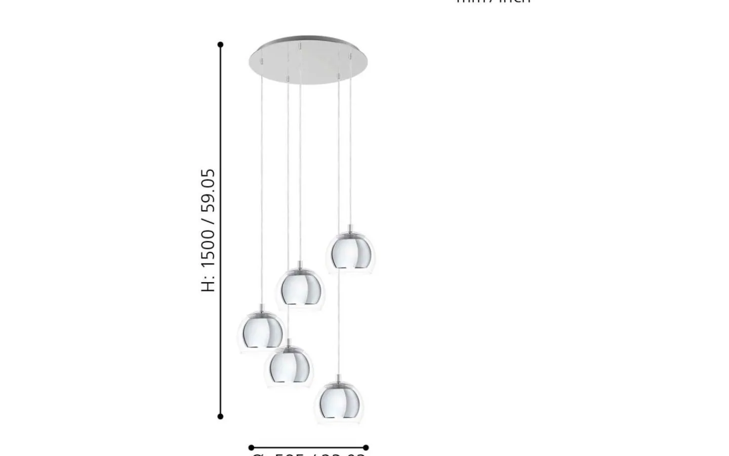 ROCAMAR taklampa har fem sfäriska skärmar av klarglas, som var och en omger med en inre lampskärm i krom. Designen har en rund kromfärgad metallkapell. Denna eleganta taklampa erbjuder en slående finish till moderna interiörer och ger stilfull belysning i vardagsrummet eller ovanför bordet i matsalen.