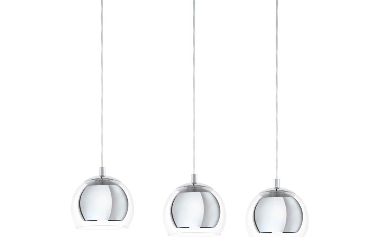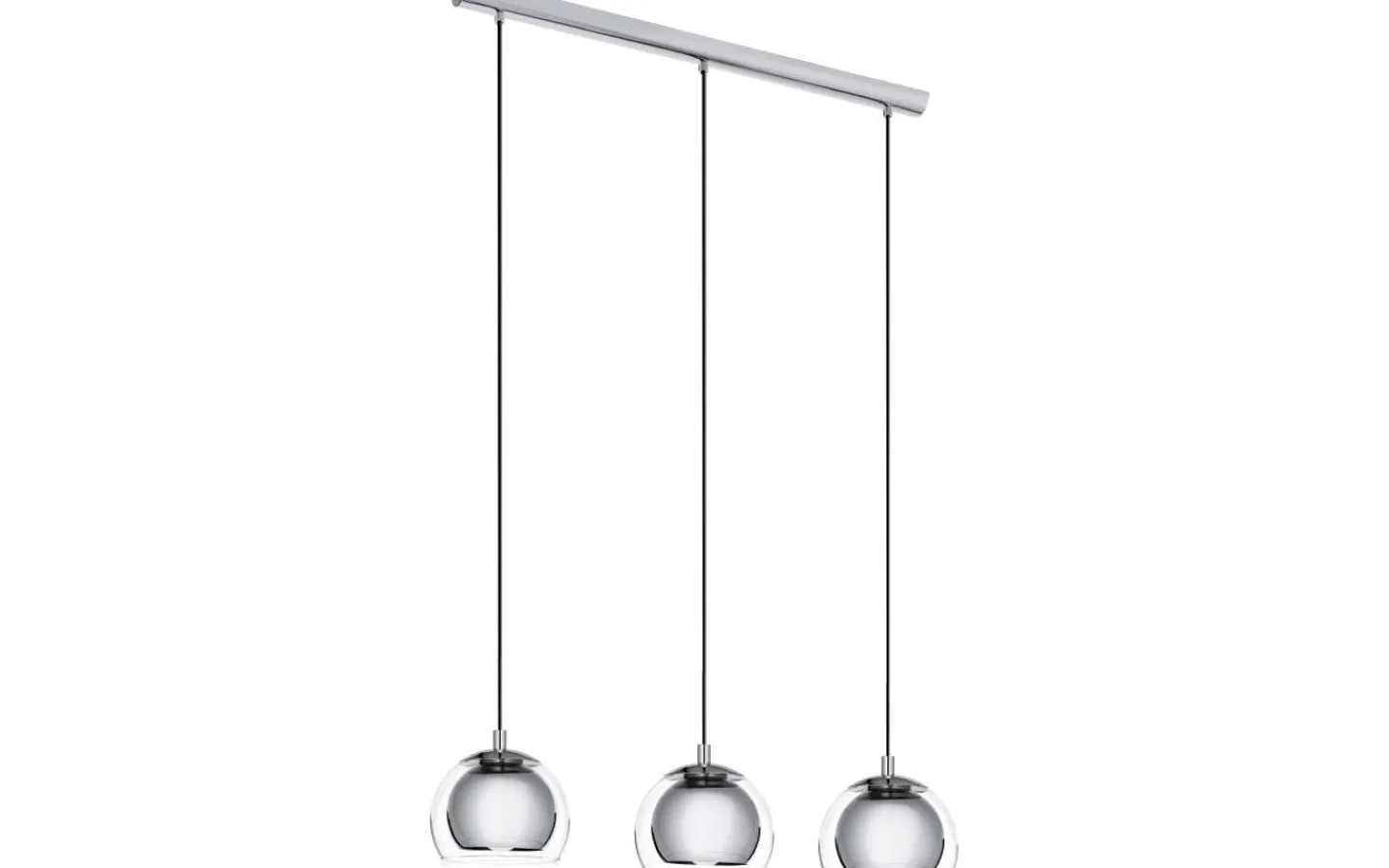 ROCAMAR taklampa har tre sfäriska skärmar av klarglas, som var och en omger en inre metallcylinder i kromfinish. Designen har en rektangulär kromfärgad metallkapell. Den eleganta taklampan har en enkel design och kompletterar utmärkt moderna interiörer och ger stilfull belysning i vardagsrummet eller matsalen ovanför matbordet.