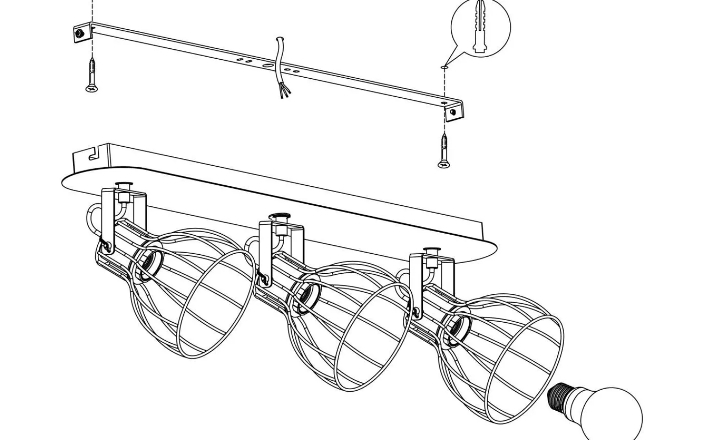 SAMBATELLO taklampa har en långsträckt design med en silverfinish och en träfiberfinish. På kroppen sitter tre justerbara trådspotlights, som skapar ett fascinerande spel av ljus och skugga när ljuset är på. Takspotlighten kompletterar interiörer i industriell stil och ger med sina svängbara huvuden fokuserad belysning, oavsett om det är i köket, vardagsrummet, sovrummet eller hallen.