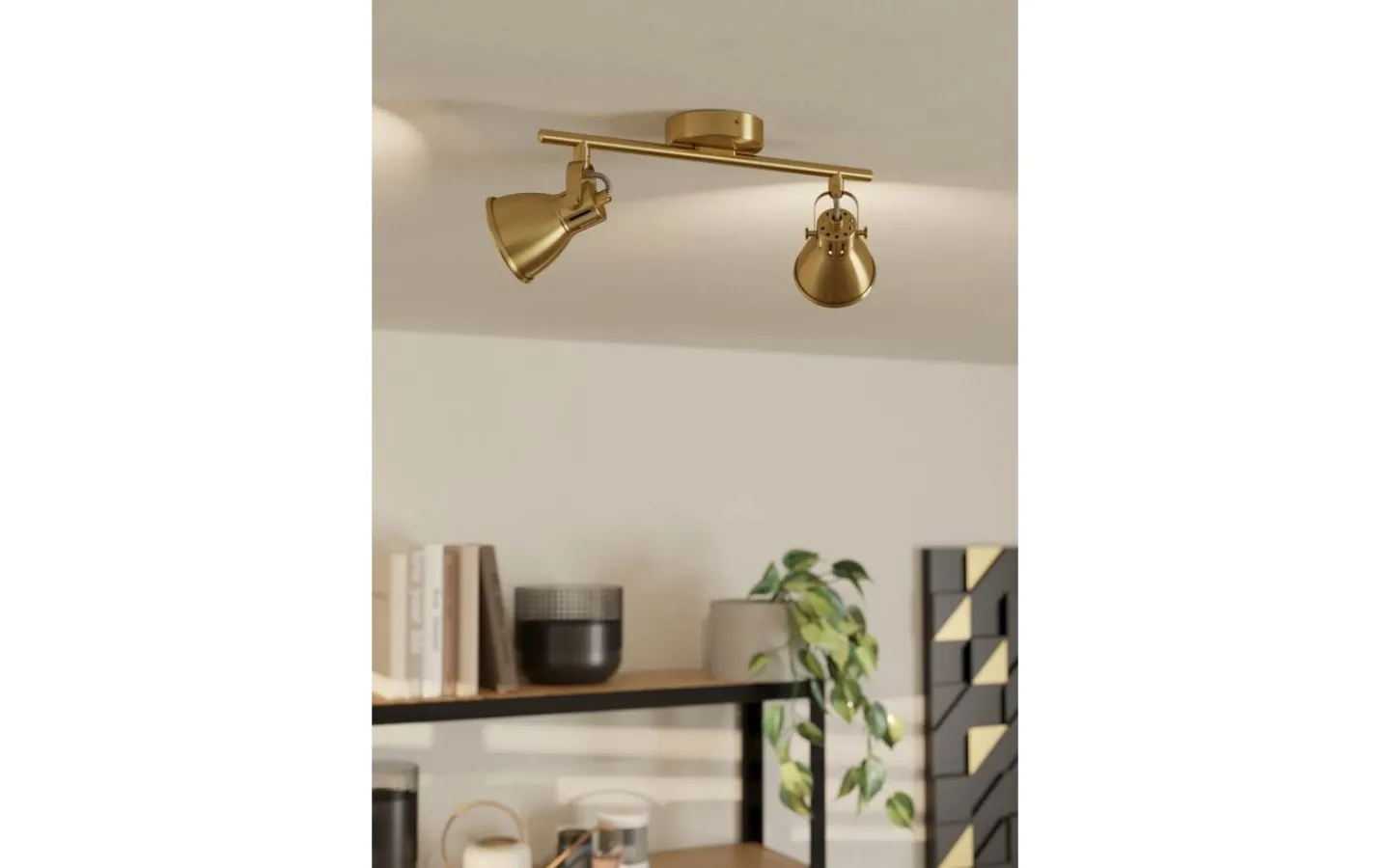 SERAS LED-taklampa har ett metallfäste i borstad mässing och två justerbara metallspotlights i samma färg. Strålkastarna har en guldfärgad insida. Takspotlightens trendiga utseende kompletterar perfekt moderna interiörer och ger fokuserad belysning i köket, vardagsrummet, sovrummet eller hallen. Produkten innehåller GU10 LED-glödlampor, som ger ett behagligt varmvitt ljus.