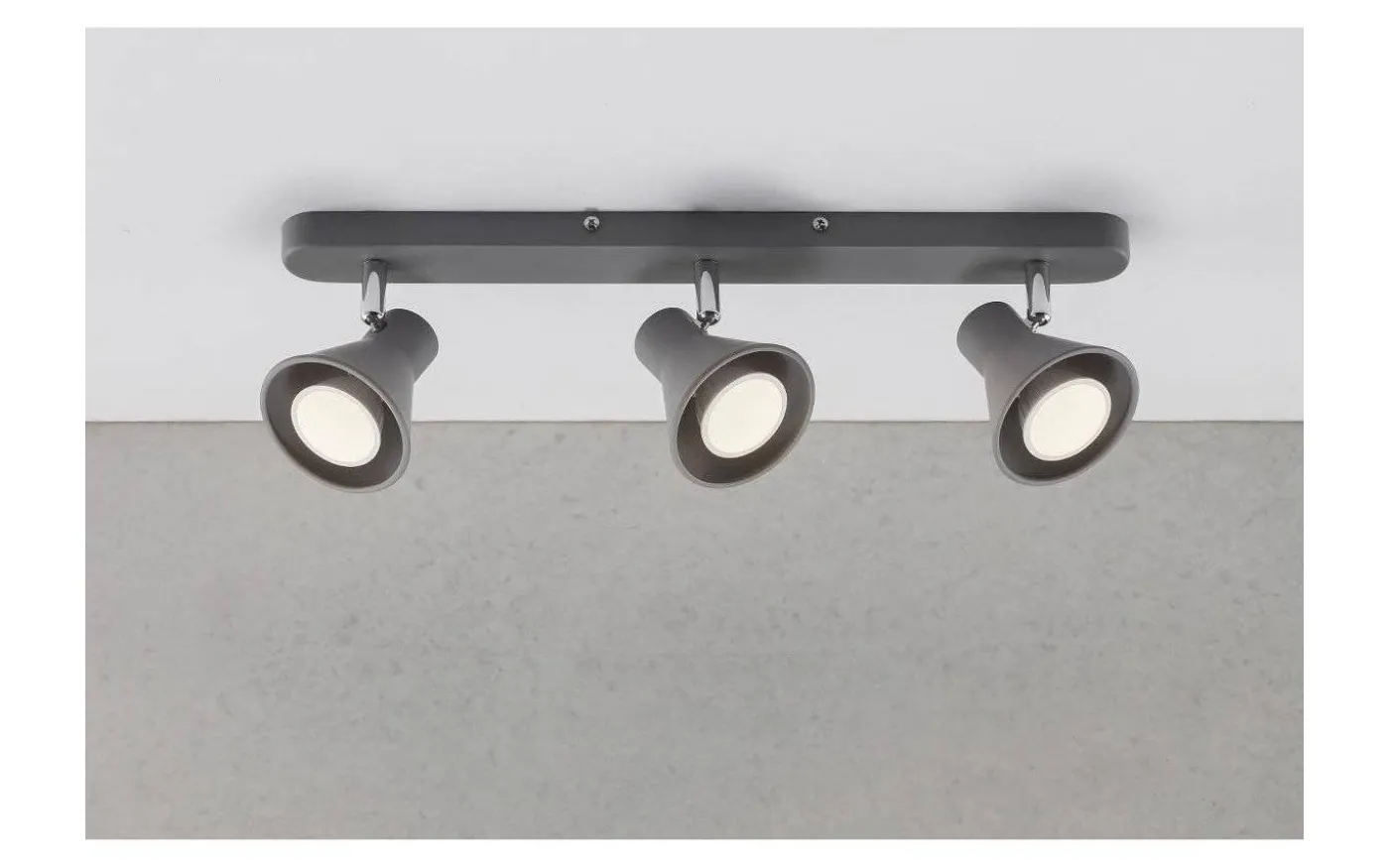 Eik takspotlight, från välkända Nordlux, är en stilren takspotlight med tre lampor i modern design. Gjord i grålackerad metall med detaljer i blank krom passar den i de flesta hem. De riktbara lamphuvudena gör att du enkelt kan justera ljusets riktning efter eget önskemål.