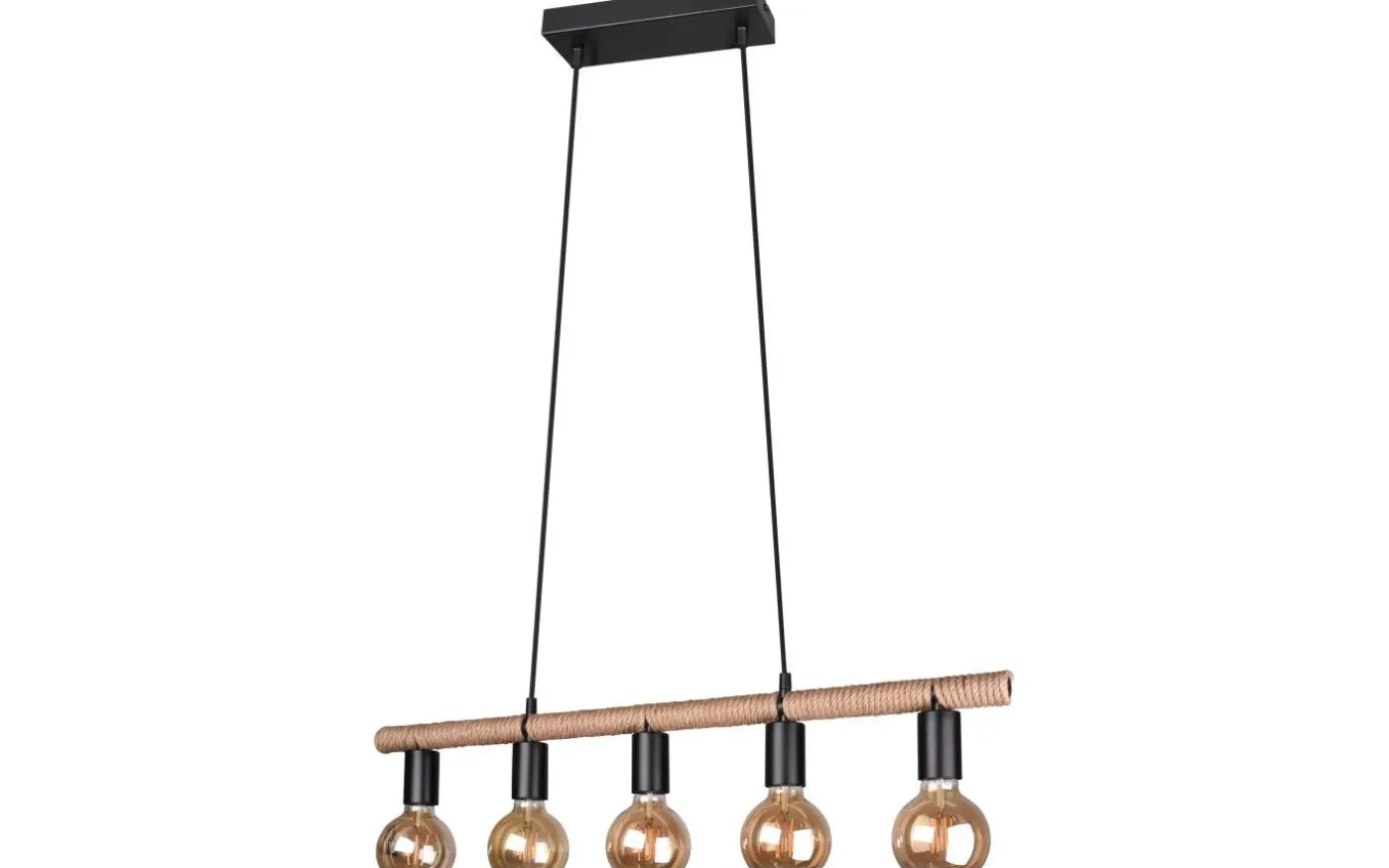 Vintage, bohemisk eller industriell. Naturliga färger och material är just nu på modet. Den dekorativa kombinationen av sisal och metall skapar en mysig atmosfär och ger ditt hem en individuell charm. Placerad mitt i matsalen ovanför matbordet kommer EINAR pendellampa verkligen till sin rätt och skapar rätt ljusstämning. Den moderna blandningen av mattsvart med det bruna naturmaterialet sisal är helt trendig och kan kombineras på en mängd olika sätt. För energibesparande belysning rekommenderas att använda en LED-lampa. Dessa är ett optimalt alternativ till konventionella halogenlampor och står för hög ljuskvalitet och energibesparingar på upp till 80 %. Dessutom hjälper LED-lampor dig att dra nytta av lång livslängd, låg värmeutveckling och samtidigt skydda miljön. Ljuskälla: exklusiv 5x E27 · max. 40W. Extra information: Justerbar i höjd, Takmontering, IP20, Lampa(or) ingår ej