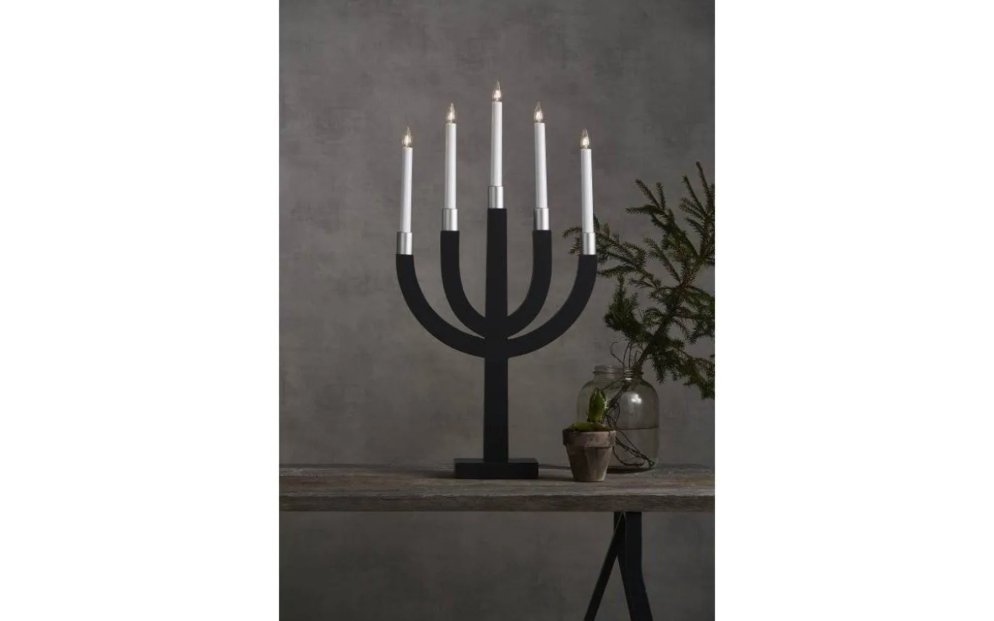 Fina Elias adventsljusstake, från Star Trading, är en ståtlig 5-armad ljusstake. Gjord i trä med en mörkgrå finish och vackra silverhylsor runt ljusen blir detta en stilfull inredningsdetalj i ditt hem till jul.