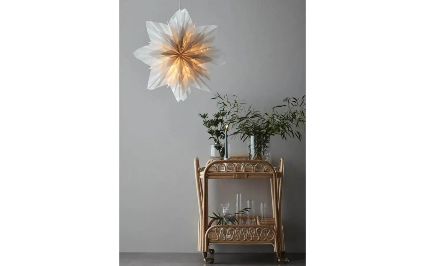 Denna grå pappstjärna släpper genom ett fint ljusflöde och Neela levereras med 3,5 meter vit kabel med strömbrytare och stickkontakt för vägguttag.