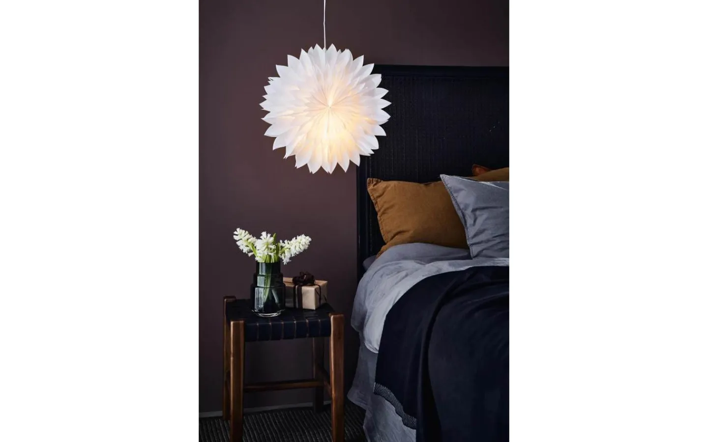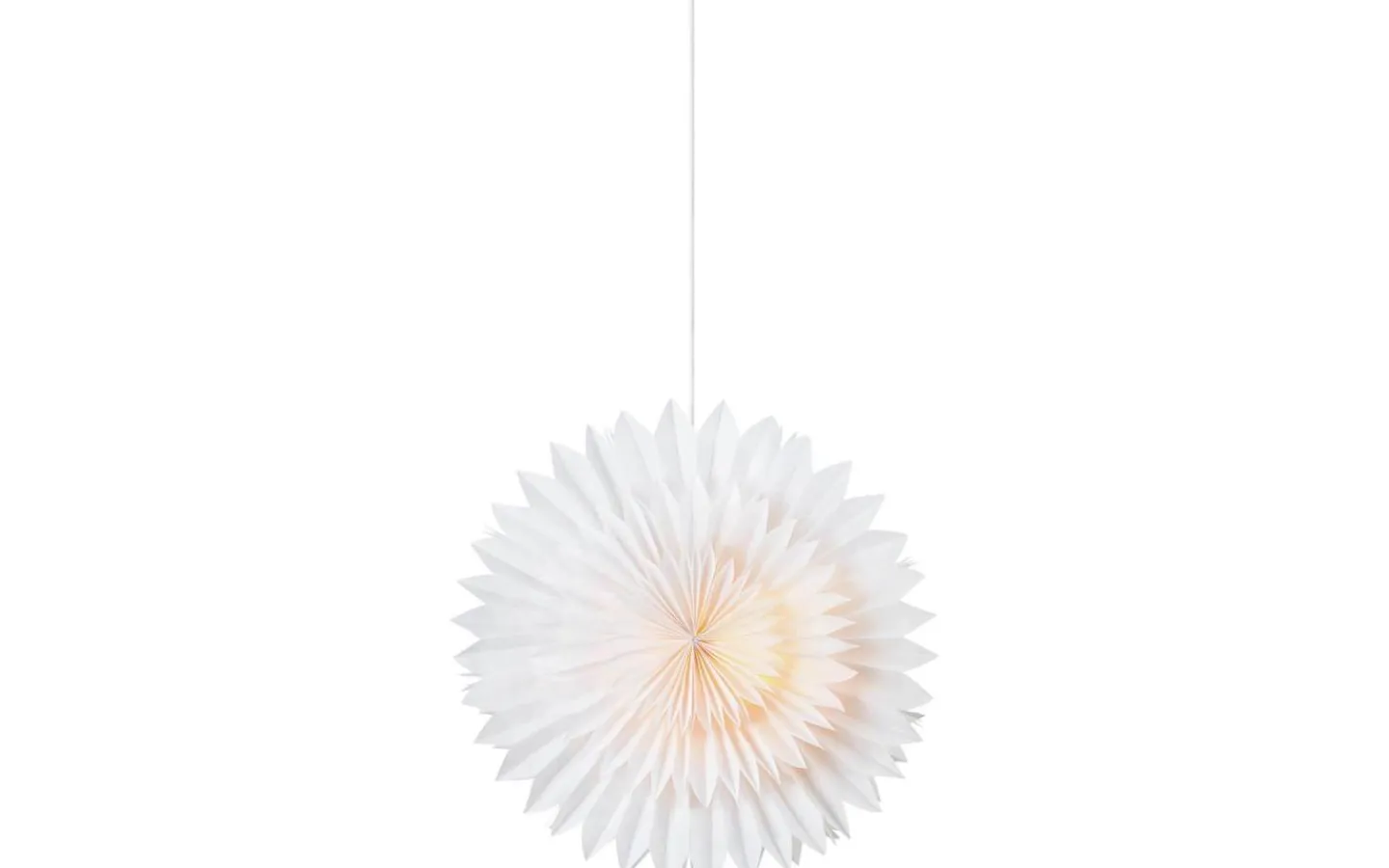 Fina julstjärnan Solina, från välkända Markslöjd, är en vackert vikt pappstjärna i vit papp. Denna stjärna i hängande modell har en diameter på 45 cm och blir en mysig dekorationsbelysning till jul.
