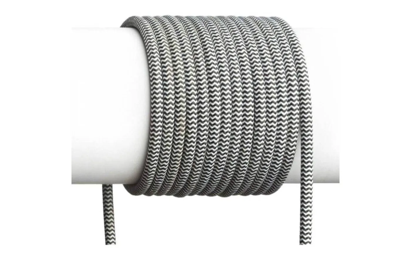 Tre-ledad (3G0,75mm2) textilkabel utan sockel och stickkontakt.