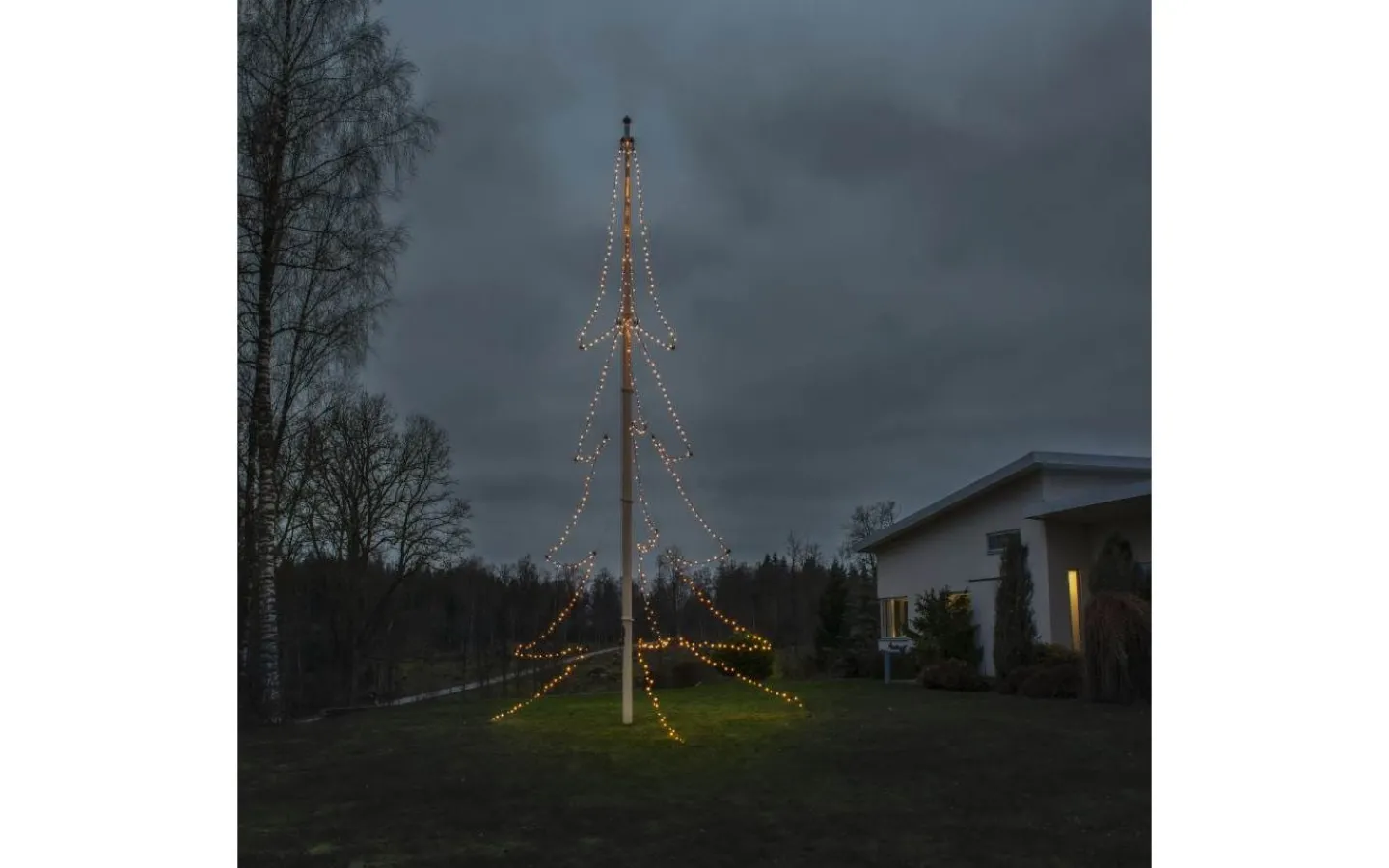 Gran från välkända Konstsmide är en dekorativ flaggstångsbelysning med formen av en gran. Flaggstångsslingan är uppdelad i 3 längder med 137st små LED-lampor på varje slinga som lyser upp i ett extra varmvitt ljussken.