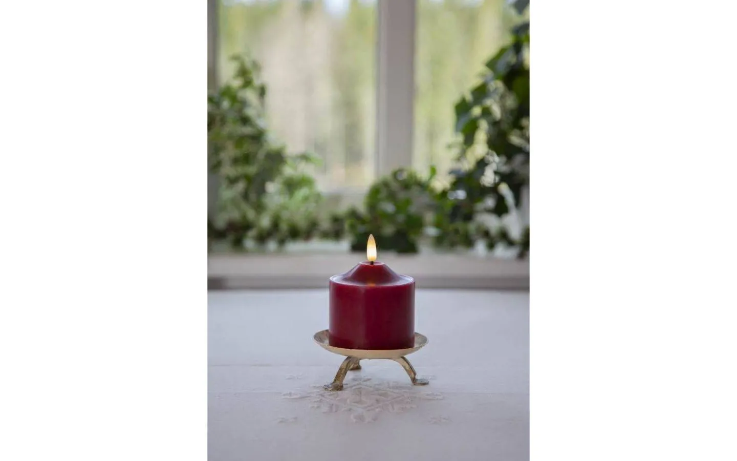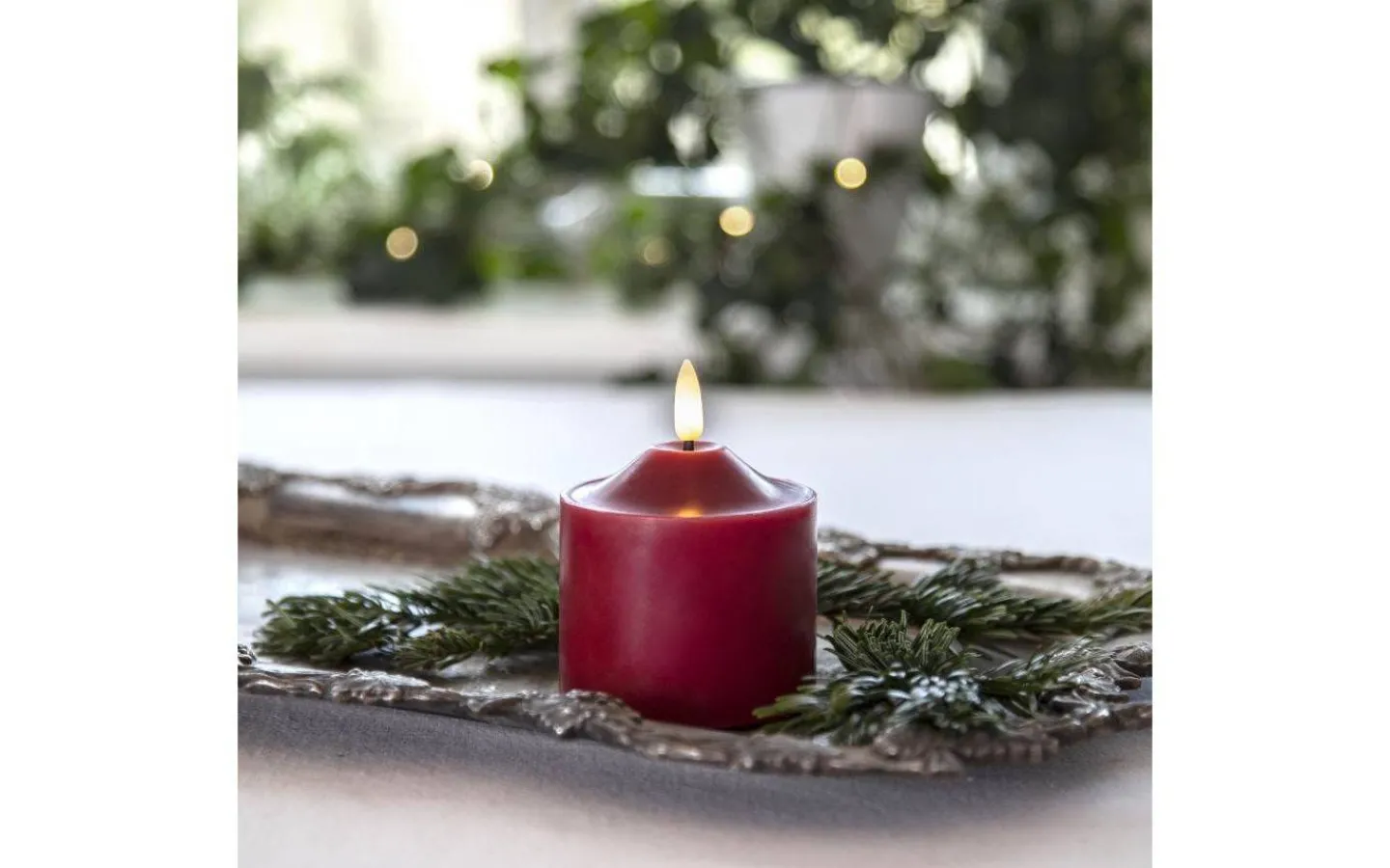 Detta fina blockljus har en svart veke med en rund 3D-låga som nästintill ser ut som en riktig låga. Ljuset lyser i ett mysigt varmvitt ljussken och lågan skiftar i ljusstyrka för att avge ett vackert och verklighetstroget intryck.