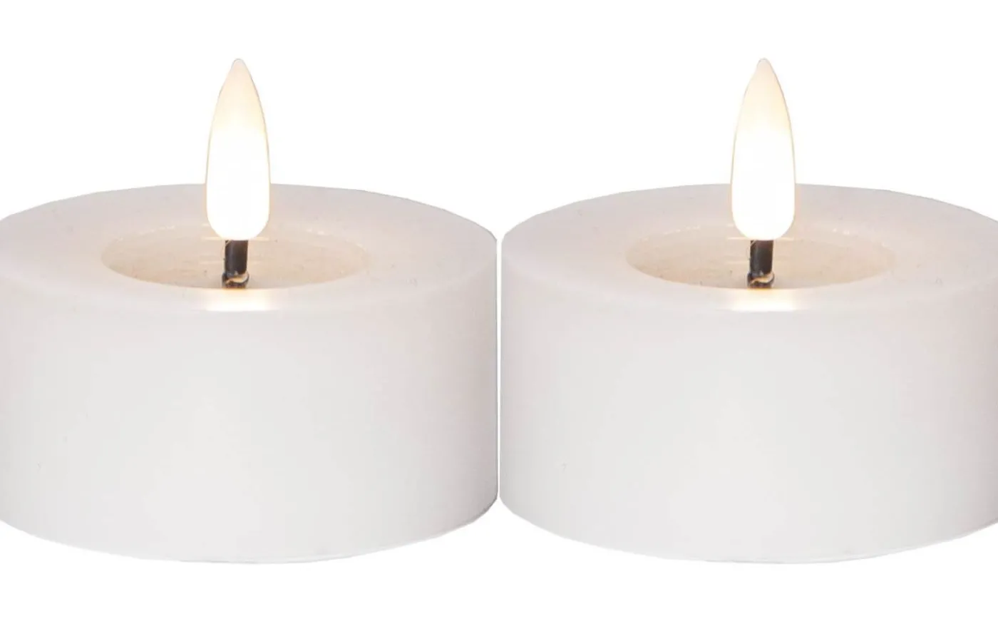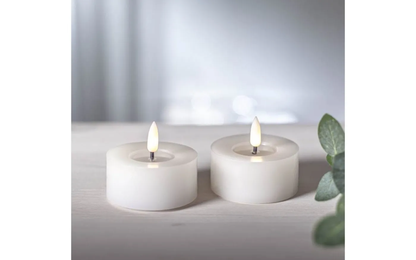 Flamme Flow XL värmeljus från Star Trading är ett 2-pack batteridrivna värmeljus i vax med en nersänkt blank yta som gör att det liknar flytande vax. Den naturtrogna runda 3D lågan är placerad på en svart veke och lyser i ett härligt varmvitt sken. Ljuslågan skiftar i ljusstyrka för att avge ett extra verklighetstroget intryck.