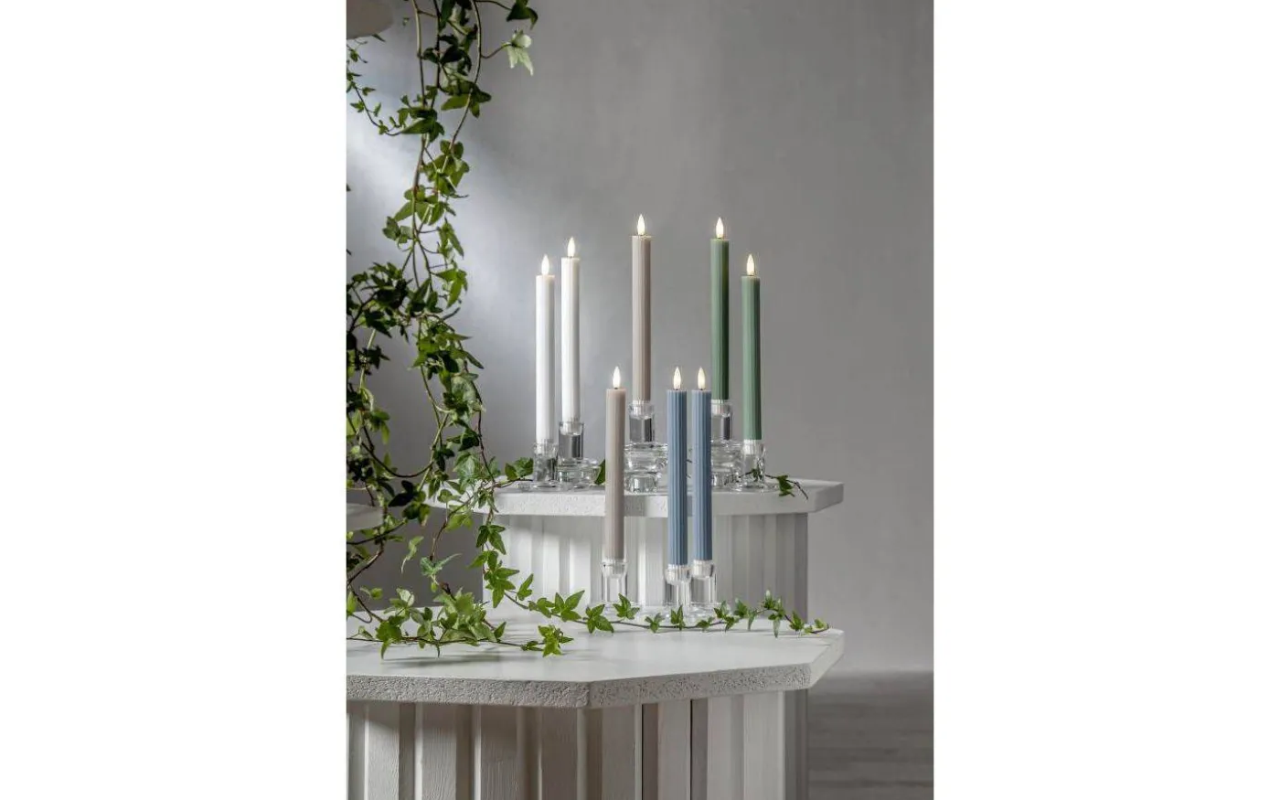 Flamme Stripe från Star Trading är ett härligt 2-pack antikljus i räfflat vax. Den naturtrogna runda 3D lågan är placerad på en svart veke och lyser i ett härligt varmvitt sken. Ljuslågan skiftar i ljusstyrka för att avge ett extra verklighetstroget intryck.