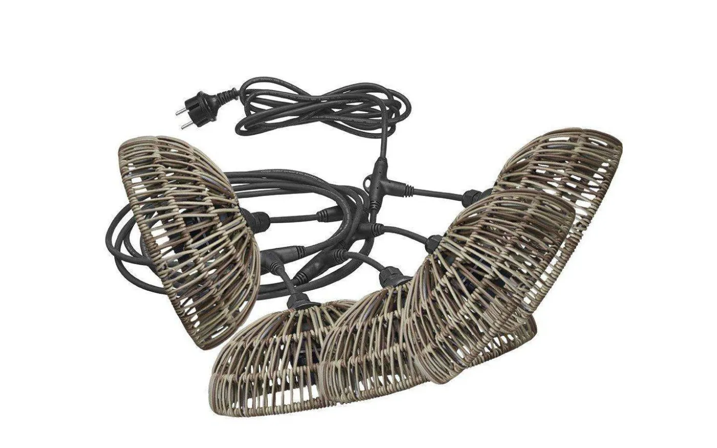 Flex Out ljusslinga från PR Home är en 6,5m lång ljusslinga med 5st E27 socklar. Anslutningskabeln är 2,5m lång till första lamphållaren, sedan är det 80cm mellan varje lamphållare. Varje lamphållare hänger ner 15 cm från T-koppling till skärmringen. Levereras med stickkontakt för vägguttag.