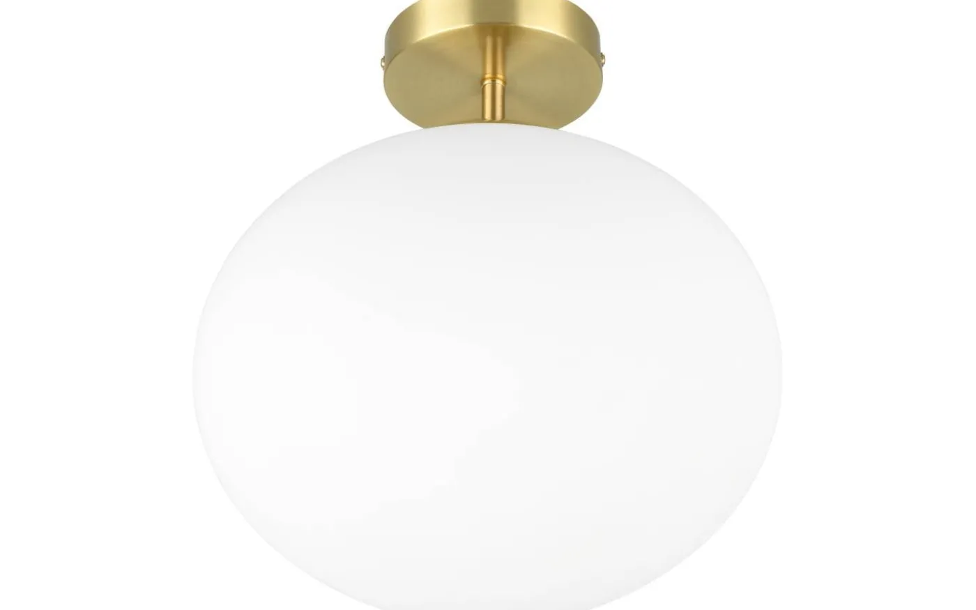 Taklampan FOMENTO sätter mjuka accenter i din matsal eller vardagsrum. Det eleganta, ellipsformade lamphuvudet i opalglas ger armaturen en speciell touch och fördelar ljuset behagligt i omgivningen. Kombinationen av matt mässing och vitt glas skapar en touch av lyx och sofistikering på samma gång. För modern och pålitlig belysning rekommenderas en LED-lampa. Den erbjuder hög ljuskvalitet, är mångsidig och övertygar med jämn belysning. Dess långa livslängd och låga värmeutveckling gör den till det perfekta valet för en mängd olika användningsområden. Ljuskälla: exklusivt 1x E27 · max. 15W. Extra information: Takmontering, IP20, Lampa(or) ingår ej