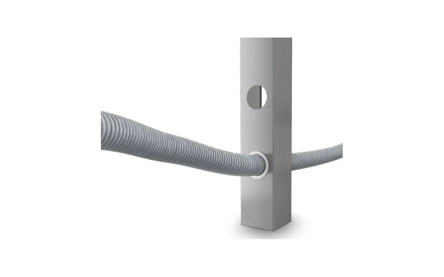 Halogenfri genomföring av plast för stålreglar. Förenklar och snabbar upp arbetet med dragning av flexrör genom stålreglar. Stålregeln punchas med håltagare 1665059 eller borras med 35 mm borr. Passar för alla typer av rör och kablar upp till 32 mm i diameter.