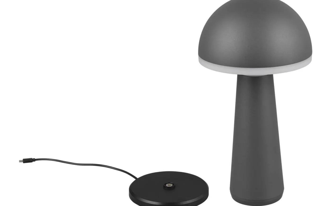 Den bärbara bordslampan FUNGO är en av de tidlösa favoriterna i världen av laddningsbara lampor. Med sina innovativa funktioner som ljusfärgsjustering, dimning via en touchfunktion och separat laddningsstation kommer den att glädja nästan alla som letar efter en flexibel ljuskälla. Med en maximal batteriladdningstid på 3 timmar lovar den sladdlösa LED-lampan upp till 5 timmars ljusglädje inomhus eller utomhus. Dess distinkta svampformade design och moderna antracitfärg gör bordslampan till ett iögonfallande dekorativt element. Dessutom har armaturerna modern LED-teknik, vilket står för hög ljuskvalitet. LED-ljuskällor kännetecknas av lång livslängd och låg värmeutveckling. Ljuskälla: inklusive 1x SMD, 2W · 1x 200lm, 3000+4000+6500K. Extra information: Justerbar ljusfärg, Funktion 114, IP54, Drivs av laddningsbart batteri, Sensordimmer, USB-C-anslutning