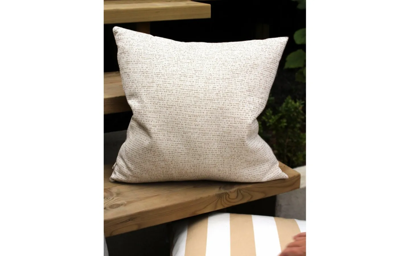 Kuddfodral avsett för utomhusbruk. Det är ett klassiskt, tåligt tyg som med sin ljusäkthet och väderbeständighet lämpar sig bra i utomhusmiljöer. Mått 45x45cm. Innerkudde i storlek 45x45cm med syntetfyllning ingår. Tyget är certifierad enligt STANDARD 100 by OEKO-TEX®. Certifieringen garanterar att produkten är testad och fri från ämnen som kan vara skadliga för hälsan och miljön. 30 grader skontvätt Klorblekmedel får ej användas Får ej torktumlas Tål strykning med låg temperatur Kemtvätt (Perkloretylen)