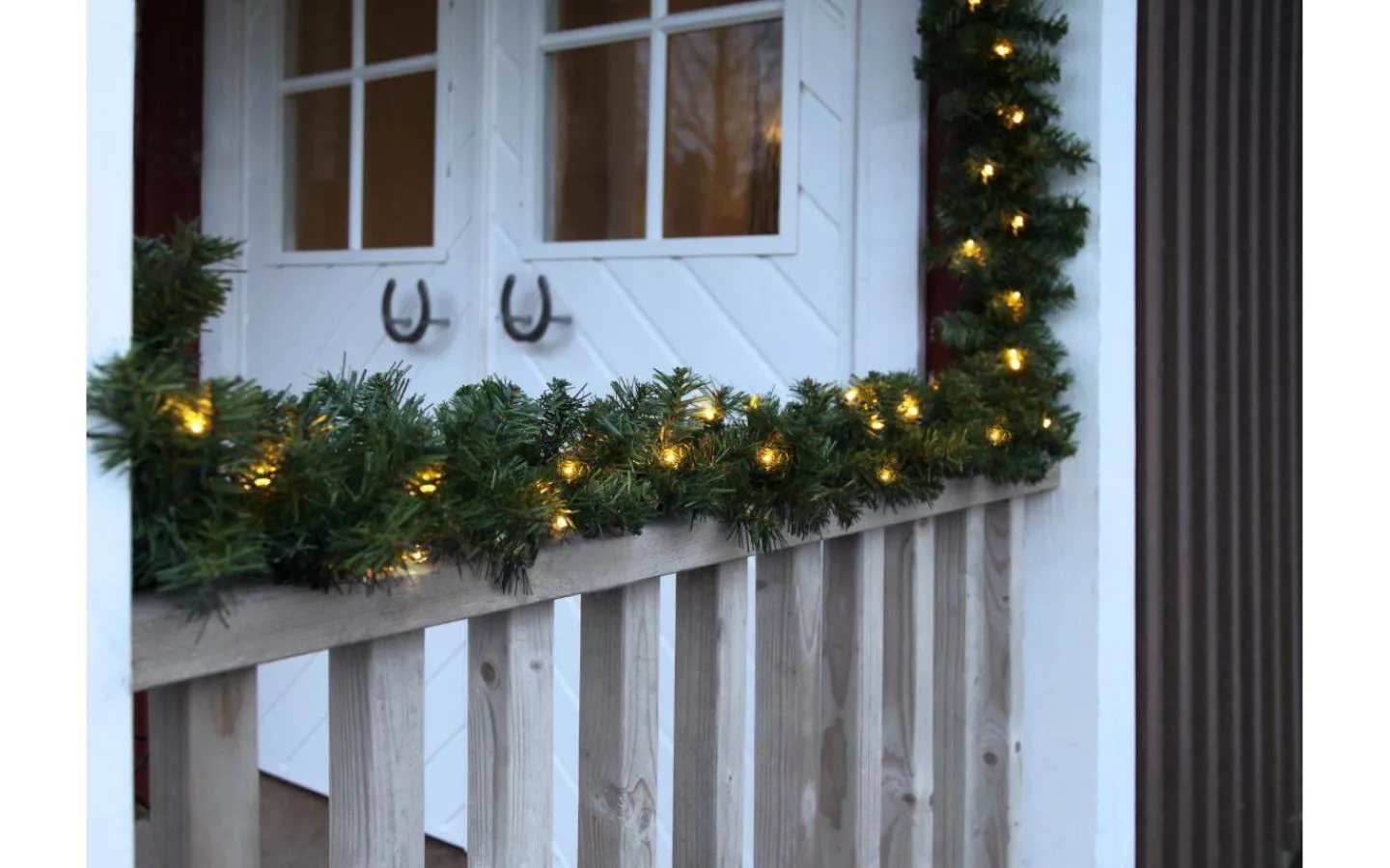 Superfin girlang på 5m med 60st små vamvita LEDljus längs topparna. En 24V AC transformator medföljer.