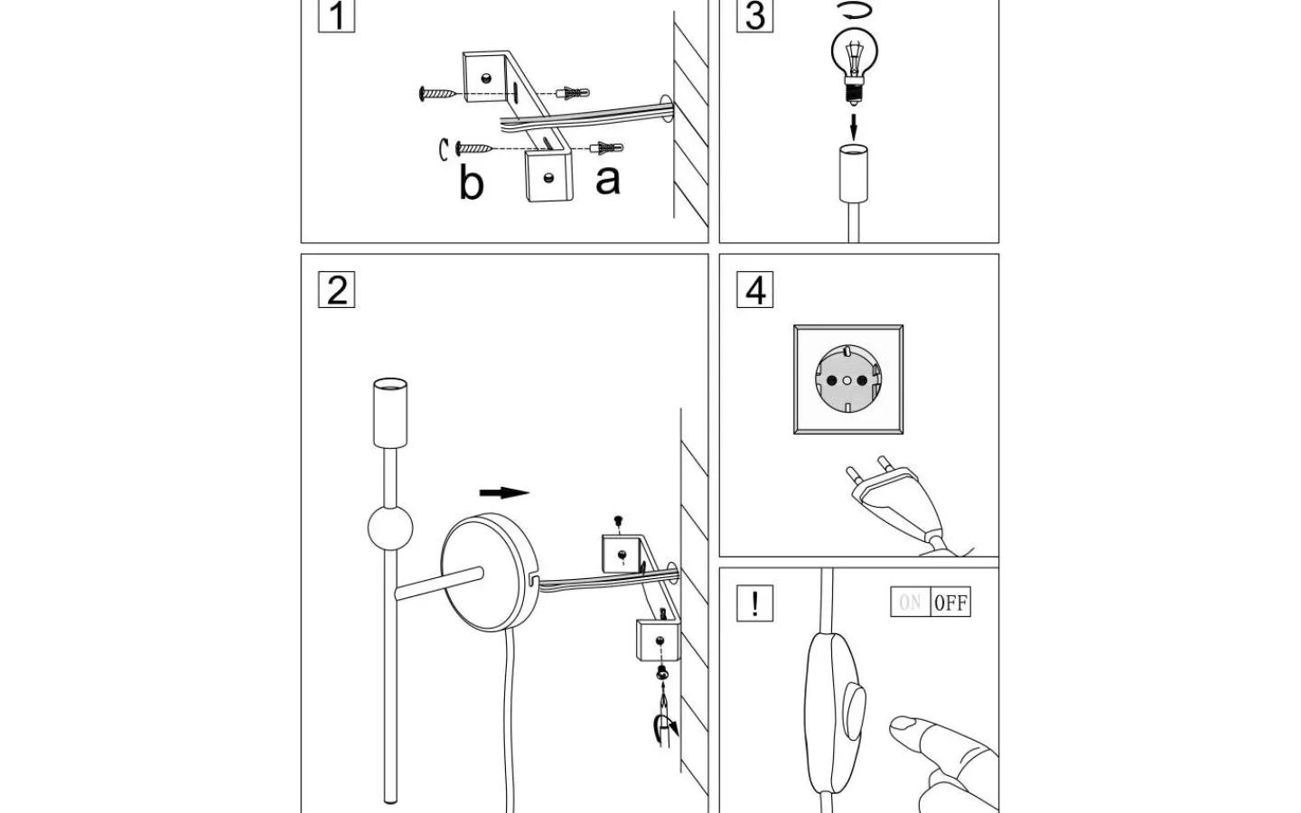 Du monterar din Astrid enkelt genom att skruva medföljande U-bygel direkt i väggen och sen fästa lamphållaren ovanpå. Detta blir en enkel och stilren vägglampa som passar lika bra intill sängen som en dekorationsbelysning på väggen i hallen eller intill soffan. Vägglampan levereras med två meter lång kabel med strömbrytare och stickkontakt för vägguttag. Sladden går ut från bakplattan av lampan på ett mycket diskret och snyggt vis, detta gör själva armaturen mer enkel och stilren i sitt utförande.