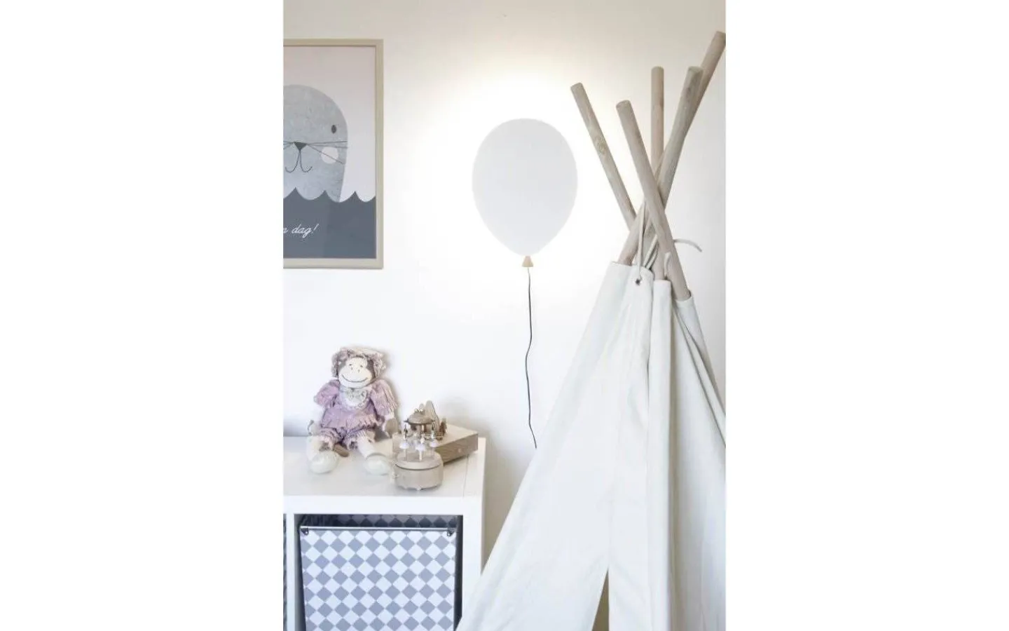 Fina Balloon vägglampa, från Globen Lighting, är en favorit i alla stilfulla barnrum! Gjord av trä som är vackert målat i fina färger, välj din favorit.