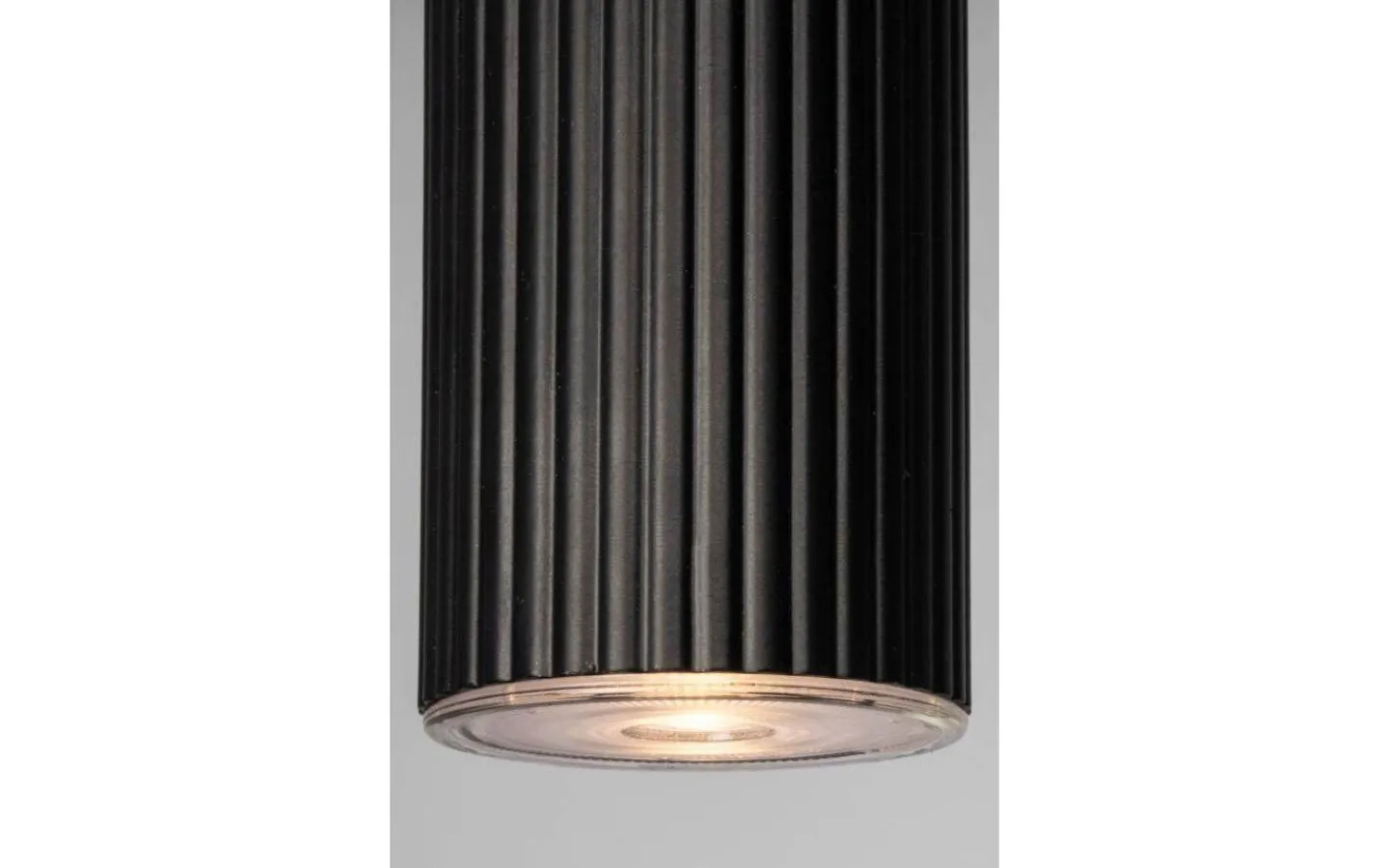 Tubformad enkel räfflad pendel i metall med flera användningsområden. Häng fler på rad över köksön, bardisken eller ett längre matbord eller så blir den vacker i all sin enkelhet ensam i ett fönster. Med olika typer av ljuskällor i den kan du också variera både utseendet och ljuset i denna pendel. Välj en riktad spot för arbetsbelysning, ett litet vitt klot för den moderna stilen eller ett större klot för stämningsfull mysbelysning. Hubble är gjord i mattsvartlackad metall och har en 350 cm lång svart textilkabel med brytare.