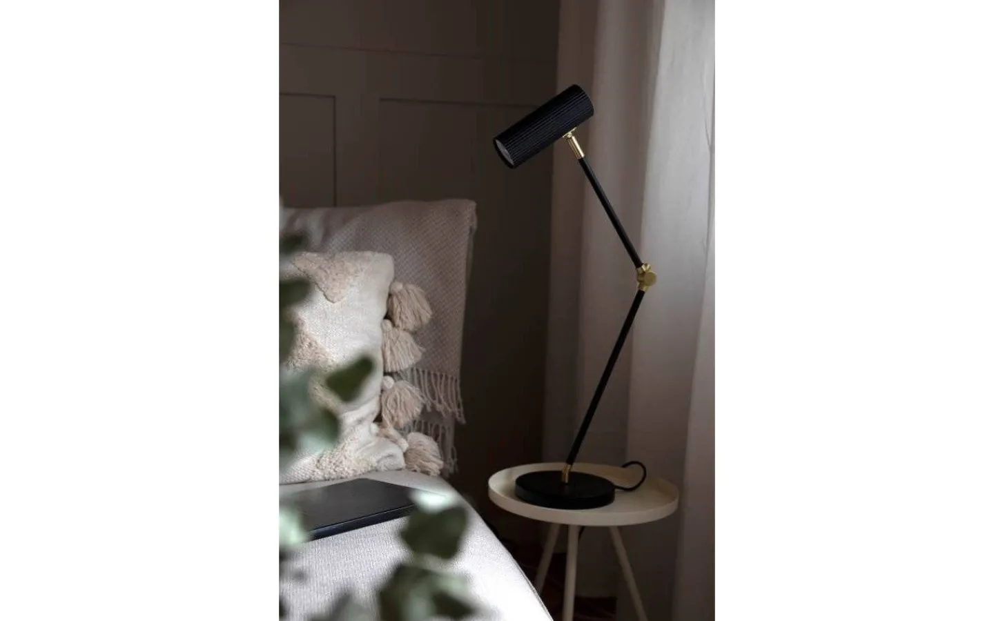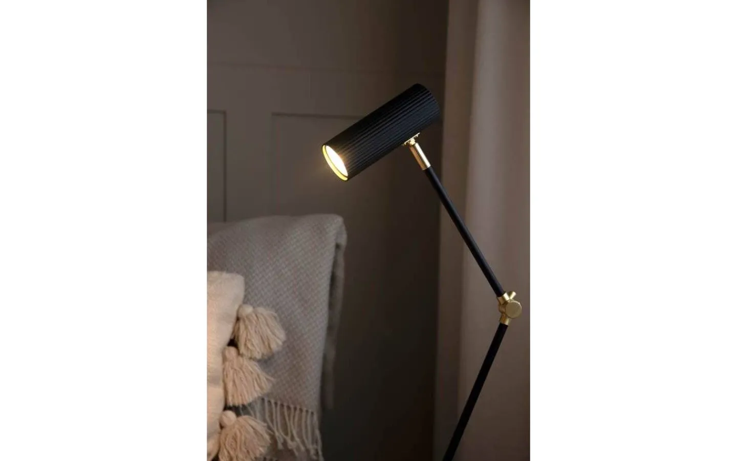 Denna läslampa är gjord i metall med en mattsvart finish med detaljer i mässing. Det smala lamphuvudet har en räfflad finish som ger lampan karaktär och en extra stilren look. Hubble har 2 meter lång sladd med strömbrytare och stickkontakt för vägguttag.
