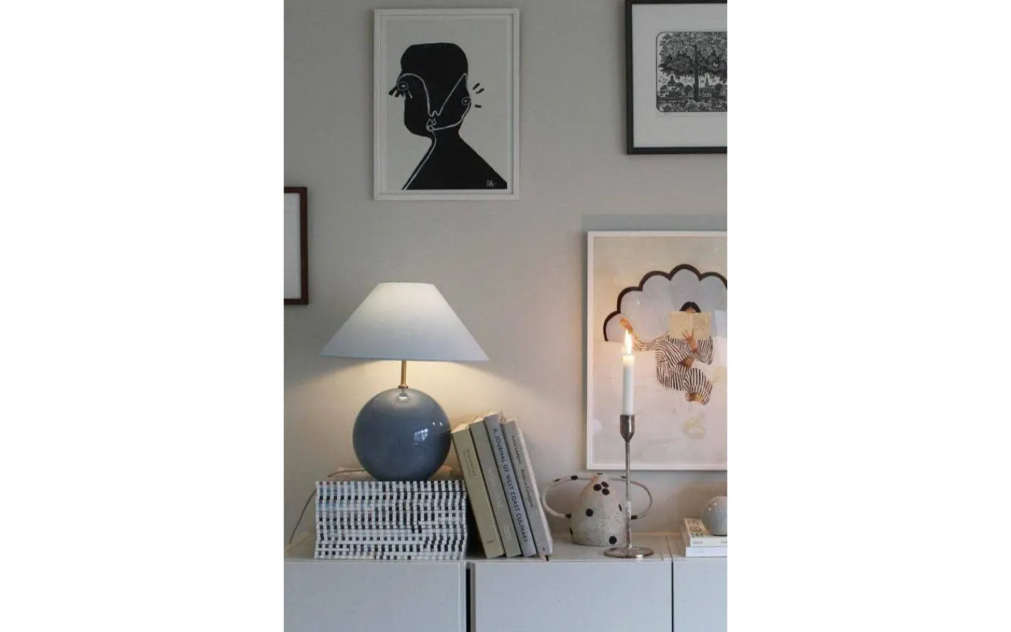 Ljuva Iris bordslampa från Globen Lighting är designad av Erika Norén som tagit inspirationen i den gamla traditionella bordslampan och att addera några samtida detaljer så som en lampfot i genomfärgat glas med oregelbundna inblåsta bubblor och till denna matchat med en lampskärm i bomull med täckt topp och som går ton-i-ton med lampfoten.