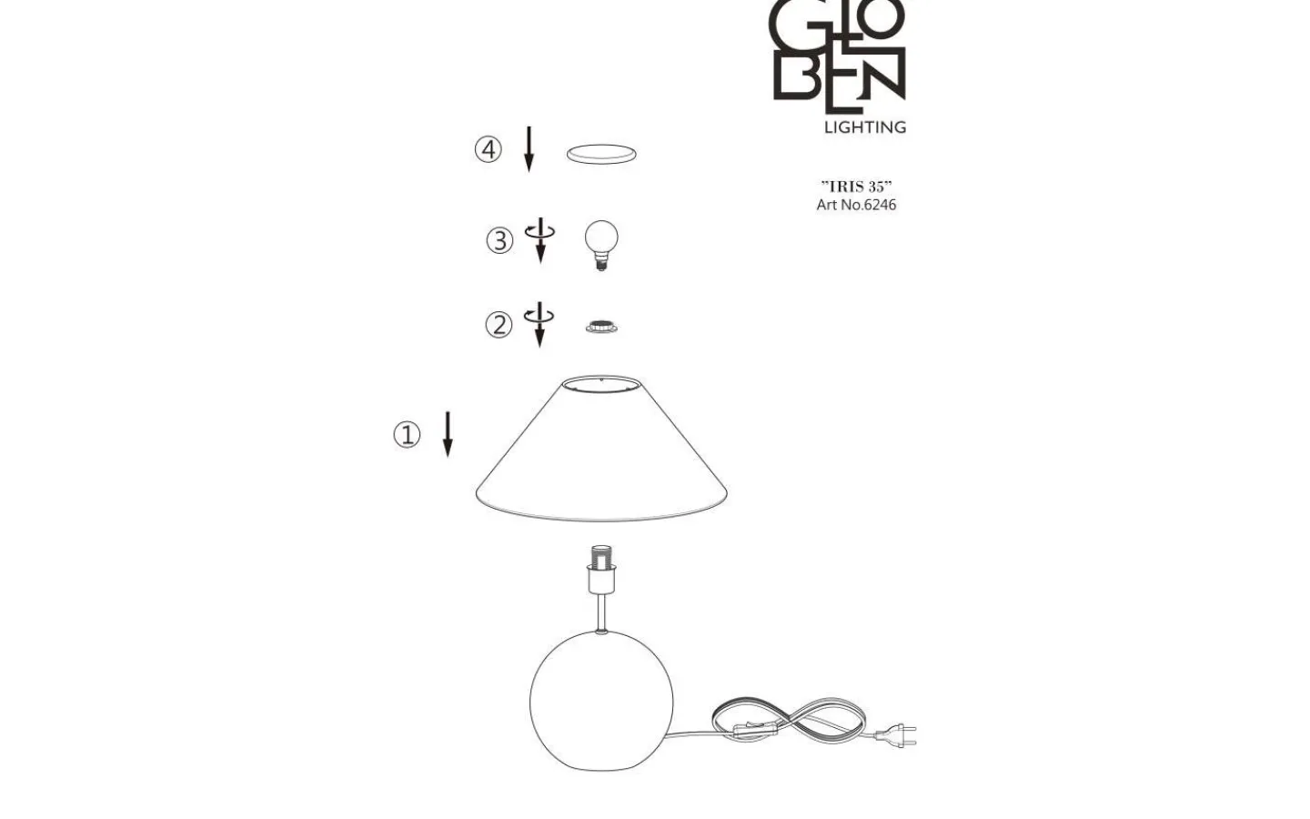 Levereras med en 2m lång beige/pärlemorfärgad textilkabel med strömbrytare och stickkontakt för vägguttag.