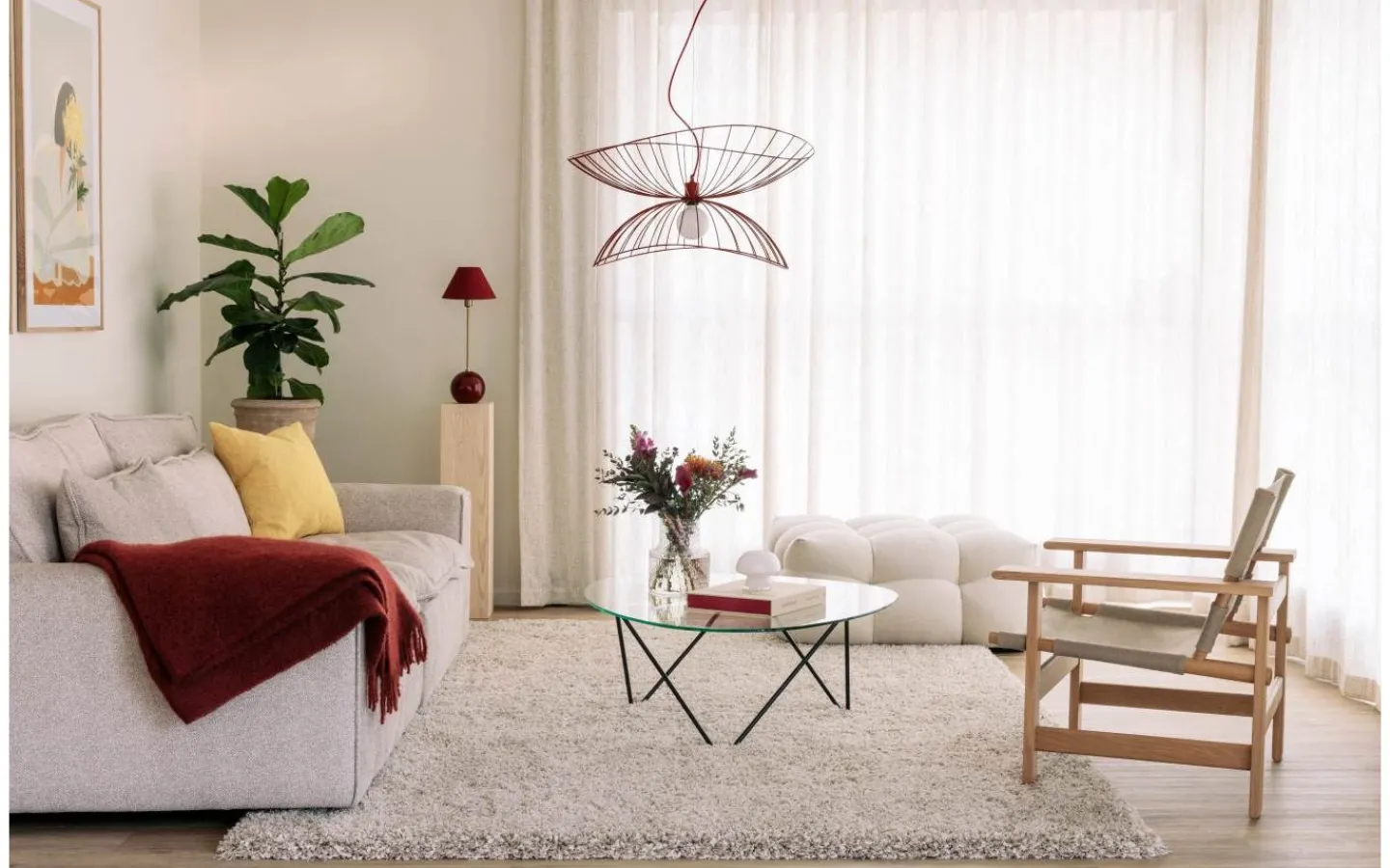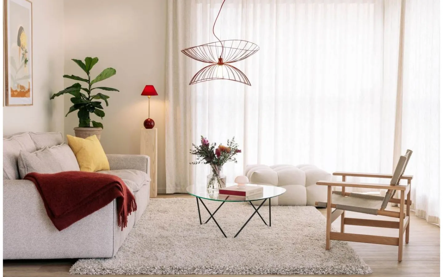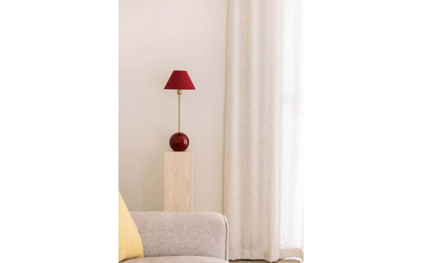 Iris från Globen Lighting är en charmig bordslampa med färgstark personlighet. Den har en rund lampfot i färgat glas med dekorativa luftbubblor och en matchande tygskärm i bomull. Varje lampa är unik tack vare glasets bubblor.