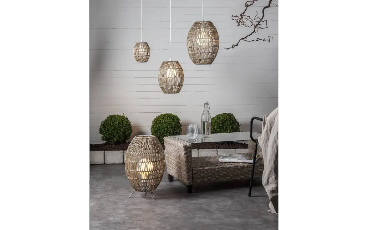 Gråbeige 46 cm hög golvlampskärm i konstrotting för utomhusbruk. Mixa och matcha med våra utomhusupphäng och ljuskällor. Passar lämpligast till upphäng med E27 sockel och ljuskällor som är mindre än 14 cm diameter.
