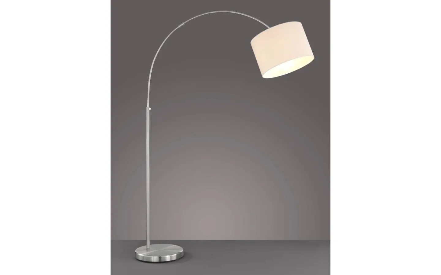 Den välvda armaturen HOTEL imponerar med sin enkla elegans. Den tygklädda skärmen skapar ett jämnt, bländfritt ljus. Armaturens höjd kan justeras steglöst från 150 cm till 215 cm, vilket gör att skärmens höjd kan anpassas. Skärmen kan även vinklas. Den välvda armaturens utsprång är exakt en meter. Själva skärmen har en diameter på 30 cm och en höjd på 20 cm, vilket gör att den sticker ut i alla boendemiljöer. Tack vare den klassiska färgdesignen i matt nickel och den vita skärmen kan lampan kombineras med många inredningsstilar. För modern och pålitlig belysning rekommenderas användning av en LED-lampa. Den erbjuder hög ljuskvalitet, är mångsidig och övertygar med jämn belysning. Dess långa livslängd och låga värmeutveckling gör den till det perfekta valet för en mängd olika tillämpningar. Ljuskälla: exklusiv 1x E27 · max. 60W. Extra information: Justerbar höjd, Fotpedal, IP20, Lampa(or) ingår ej