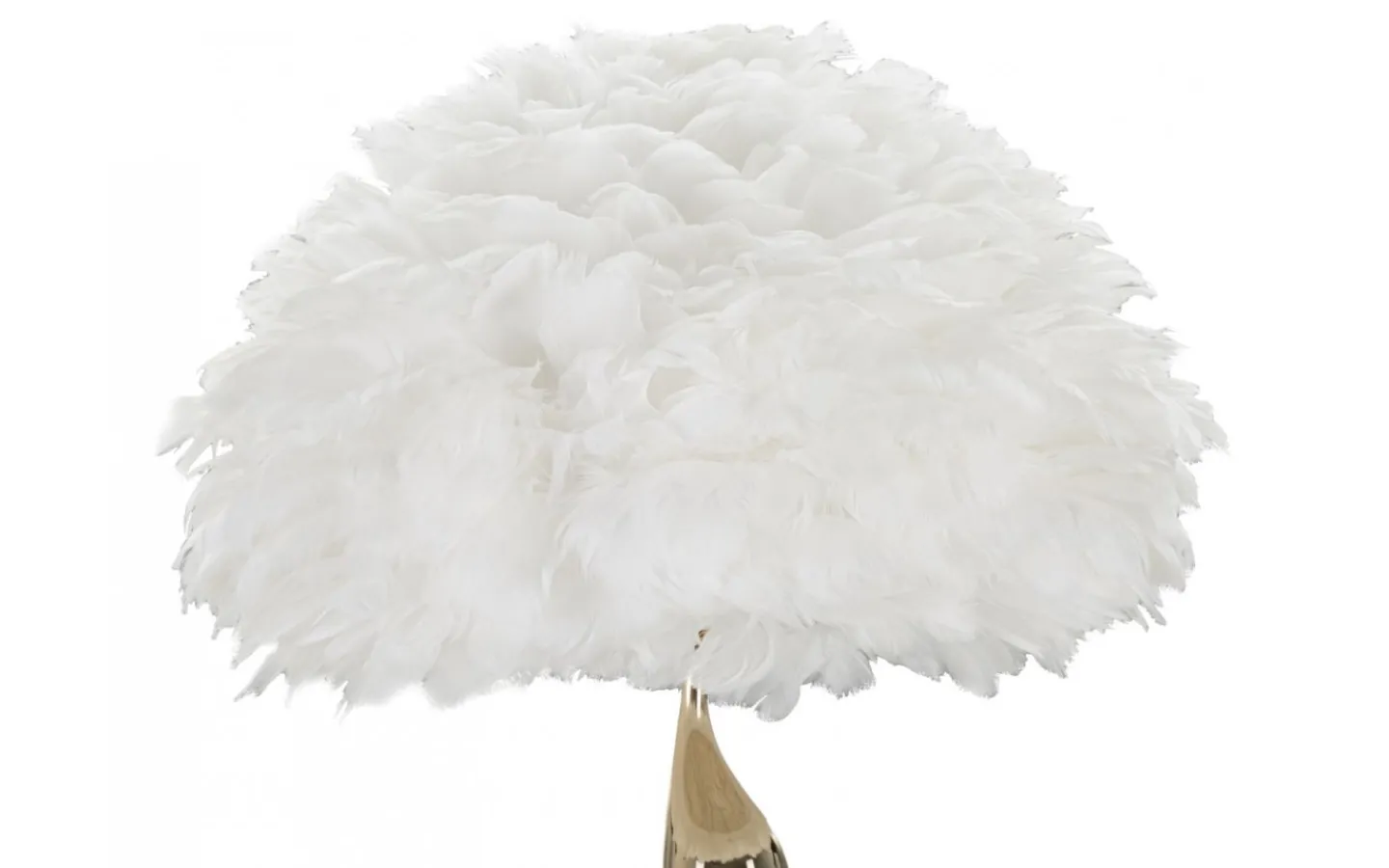 Golvlampa i gyllene metall med elegant mjuk och slingrande dekoration komplett med lampskärm av fjädrar.