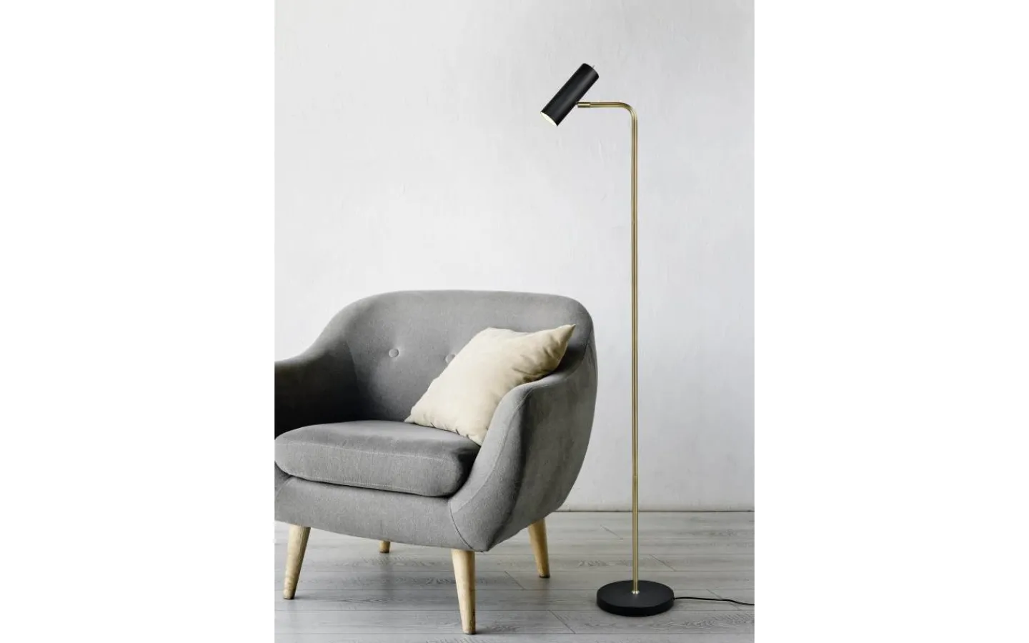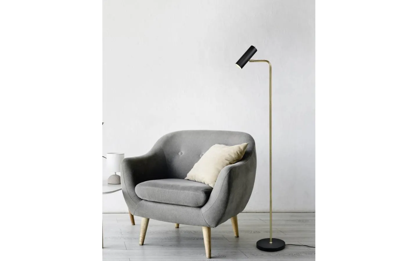 Den minimalistiska inredningstrenden blir alltmer populär och skapar en lugnande och harmonisk miljö. Tack vare de rena linjerna och den minimalistiska designen hos golvlampan MARLEY tar ljuset plats och ger stämningsfulla ljusaccenter. Armaturhuvudet är rörligt och kan riktas fritt uppåt och nedåt. Oavsett om det är som läslampa bredvid soffan eller som en diskret ljuskälla i hallen, sätter golvlampan scenen för speciella platser. Kombinationen av färgerna mattsvart och matt mässing skapar en modern armatur som skapar färgkontraster. För modern och pålitlig belysning rekommenderas användning av en LED-lampa. Den erbjuder hög ljuskvalitet, är mångsidig och övertygar med jämn belysning. Dess långa livslängd och låga värmeutveckling gör den till det perfekta valet för en mängd olika användningsområden. Ljuskälla: exklusiv 1x GU10 · max. 5W. Extra information: IP20, Lampa(or) ingår ej, Strömbrytare